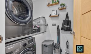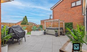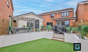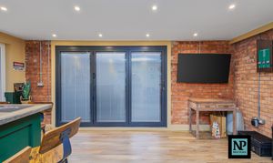 Externally, the rear garden is neatly landscaped and designed for low maintenance, offering an ideal space to relax or entertain without the upkeep of a large garden. The converted garden bar, accessed via open bi-fold doors, provides an outstanding entertaining space and links perfectly with the kitchen, making it ideal for social gatherings throughout the year.
