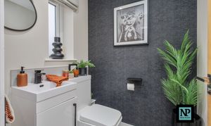 The heart of the home is the impressive open-plan kitchen and dining area, which is visible from the moment you step inside, creating a striking first impression. Finished to a high specification, the kitchen boasts extensive storage and a superb sociable layout, further enhanced by bi-fold doors opening directly onto the rear garden, seamlessly blending indoor and outdoor living. A separate utility room and downstairs WC add further practicality.
