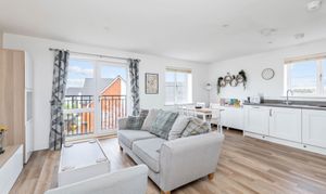 The accommodation comprises: entrance hallway with airing and storage cupboards and open plan kitchen/sitting/dining room with west facing Juliet balcony. The kitchen is fitted with an attractive range of units and integrated appliances that include fridge/freezer, hob, extractor, oven, washing machine and dishwasher.