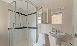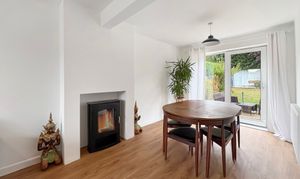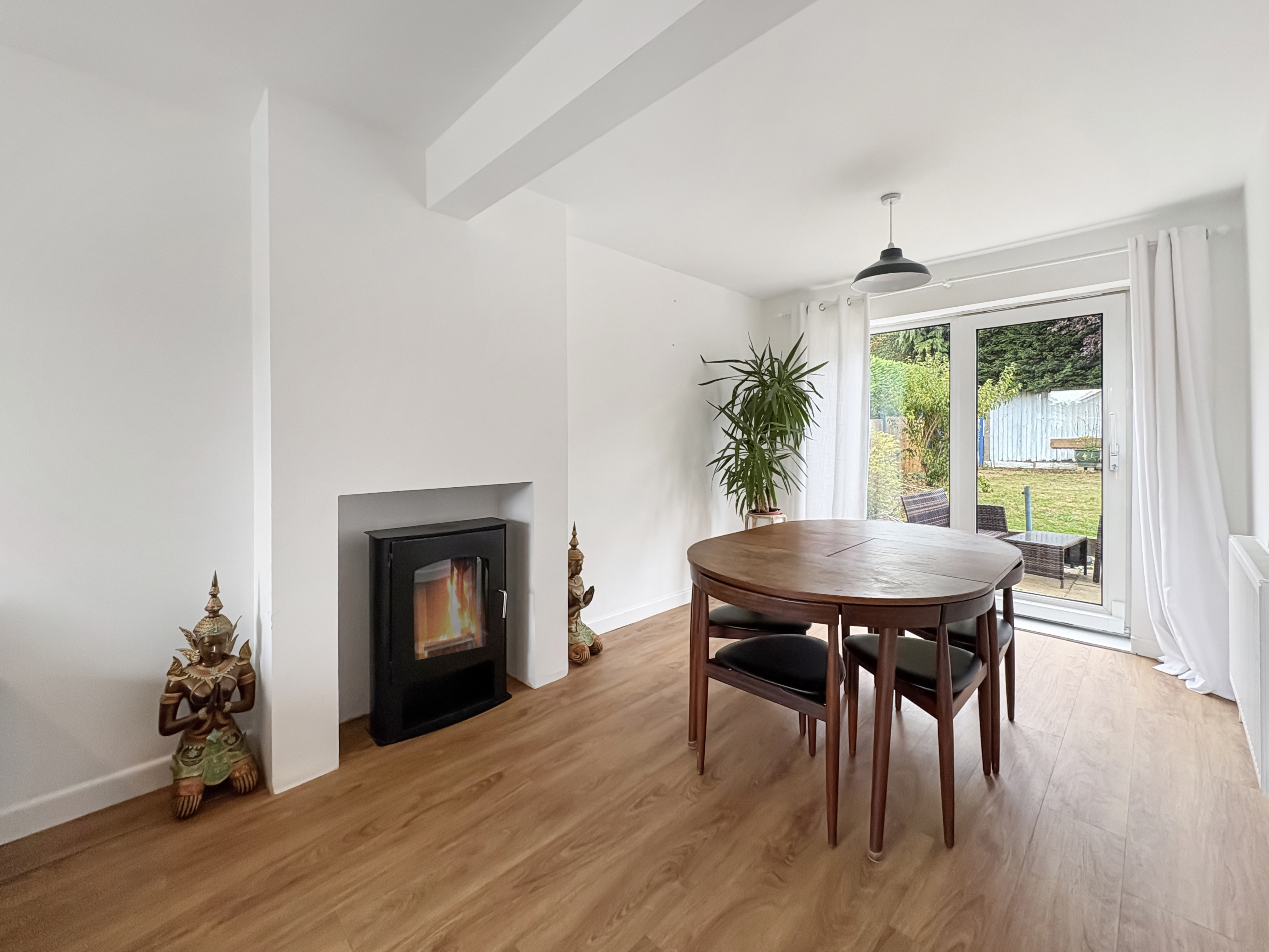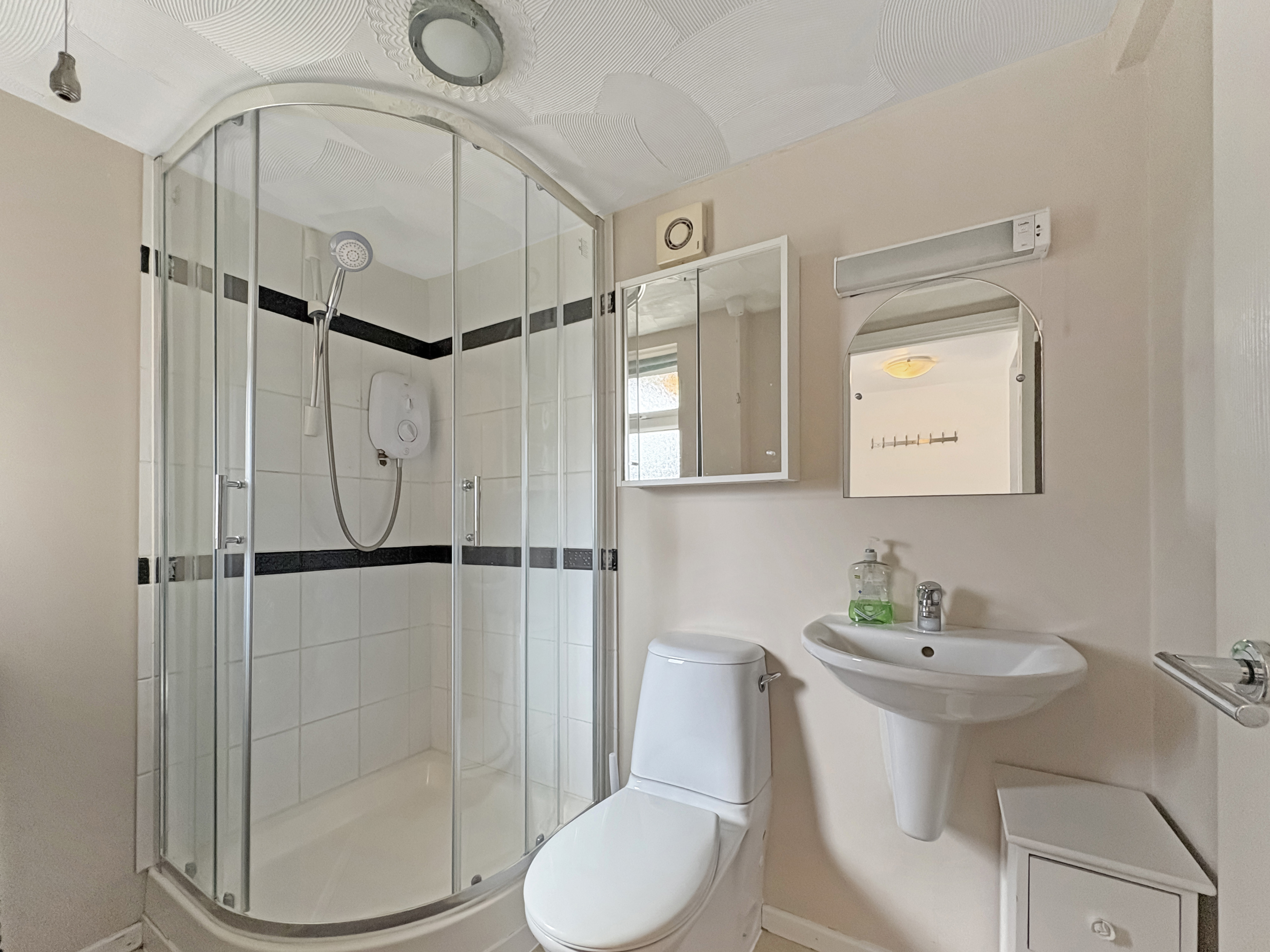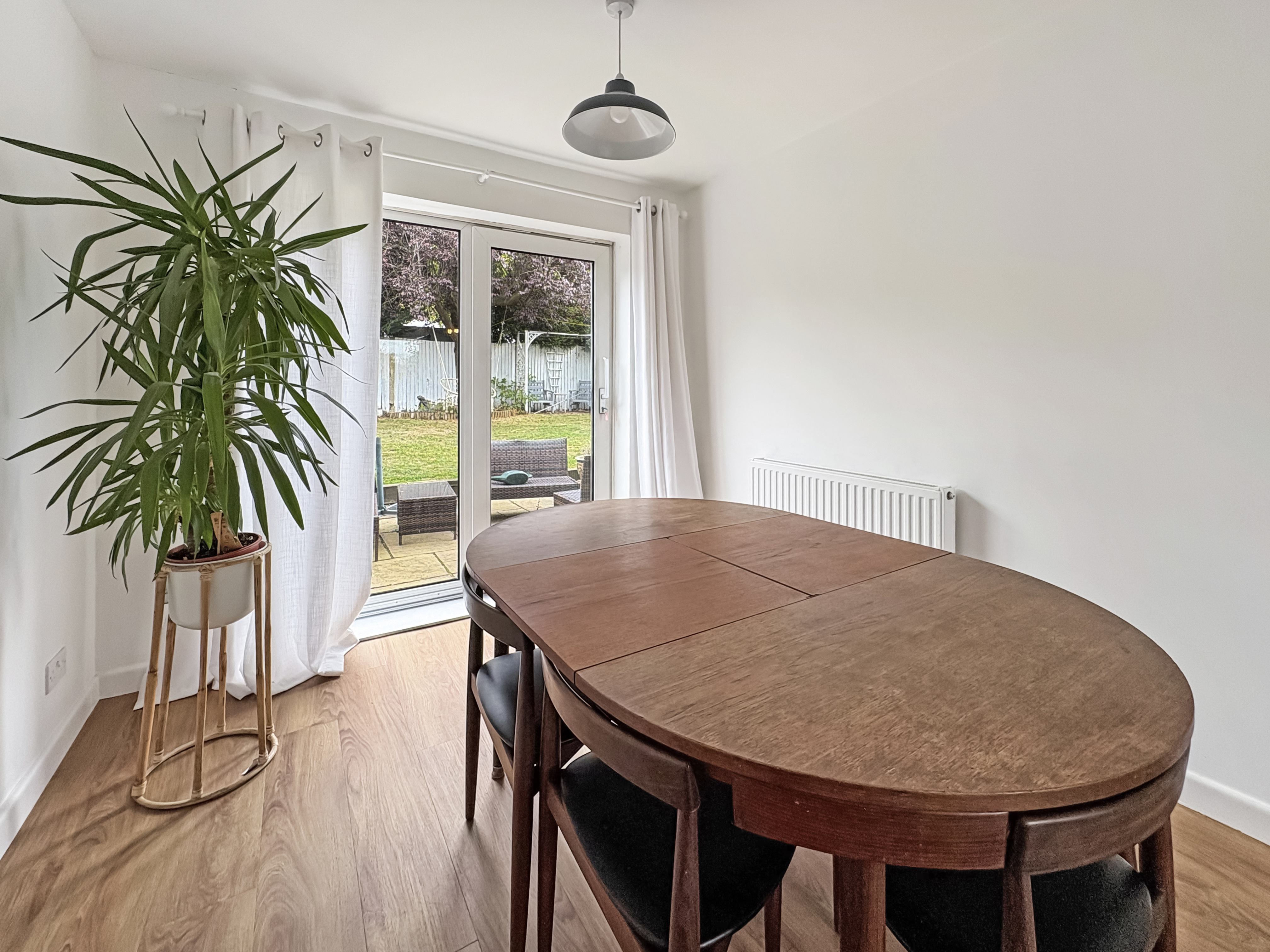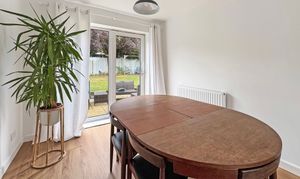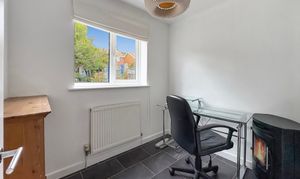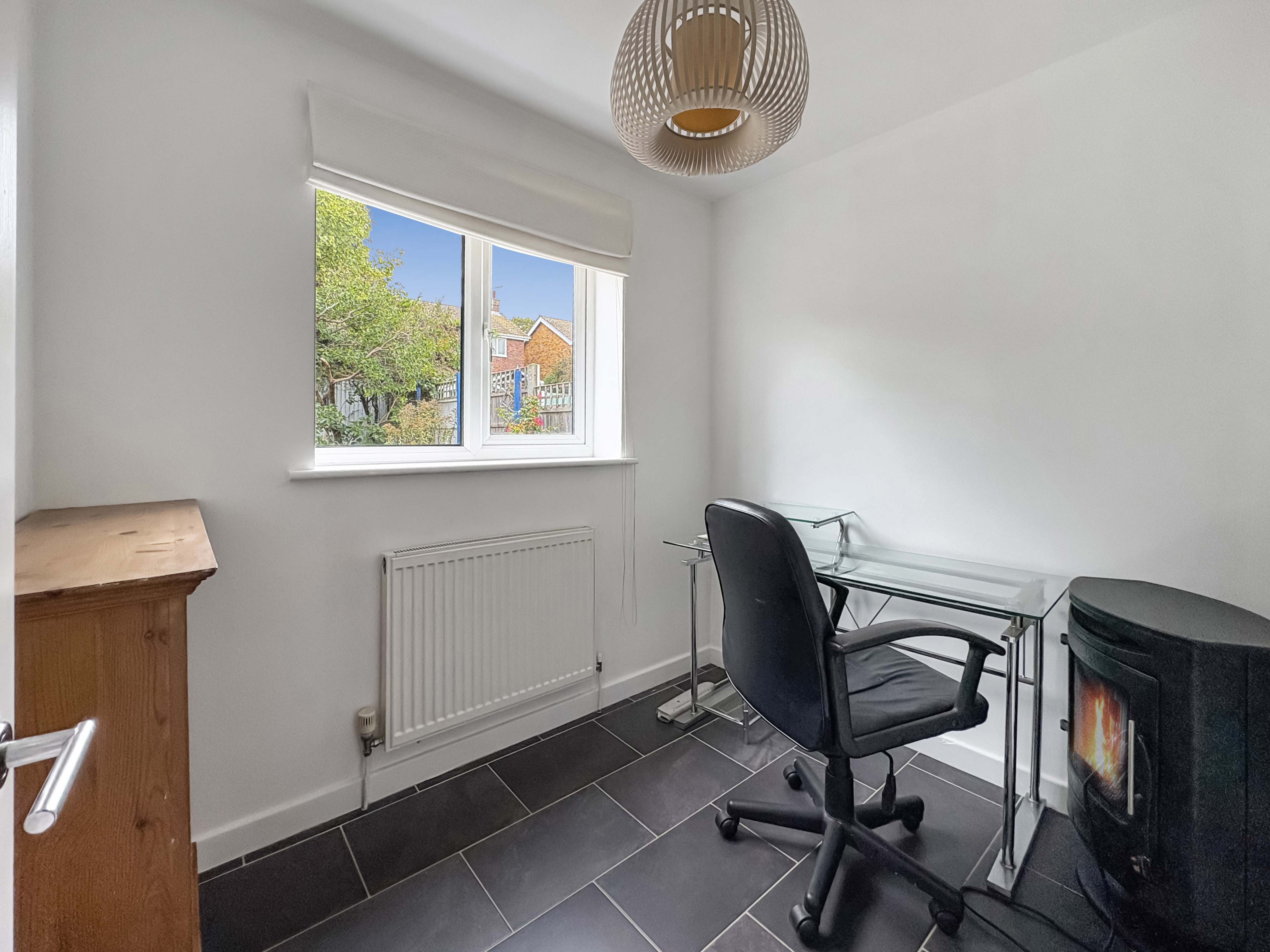 The ground floor offers a generously sized living/dining room, enjoying dual-aspect windows and direct access to the rear garden—perfect for both everyday living and entertaining. A well-equipped kitchen, a separate study ideal for home working, and a ground floor shower room complete the downstairs accommodation.