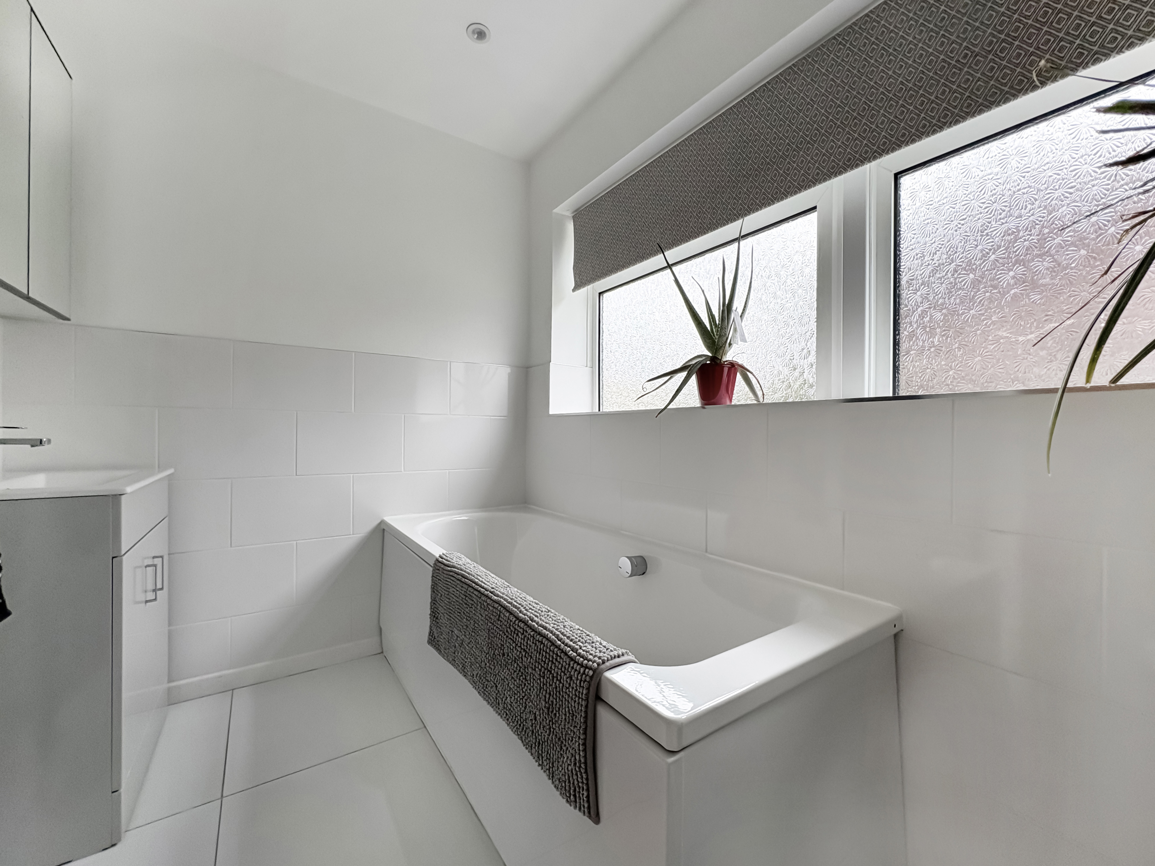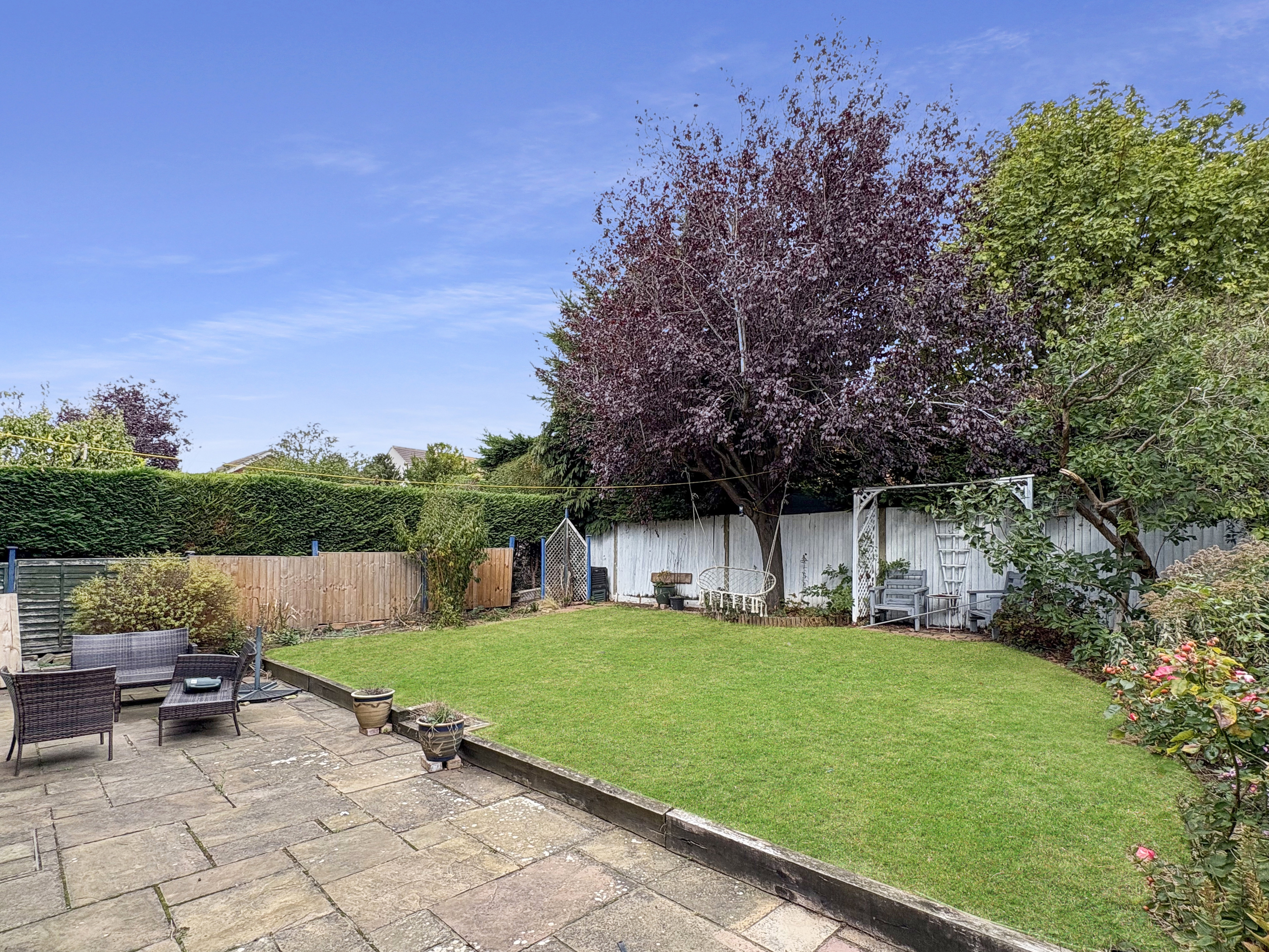 Outside, the rear garden is private and mainly laid to lawn with a patio seating area and mature shrub borders. To the front, the property benefits from an extensive driveway, an integral garage, and a neat front garden, offering both kerb appeal and practicality.