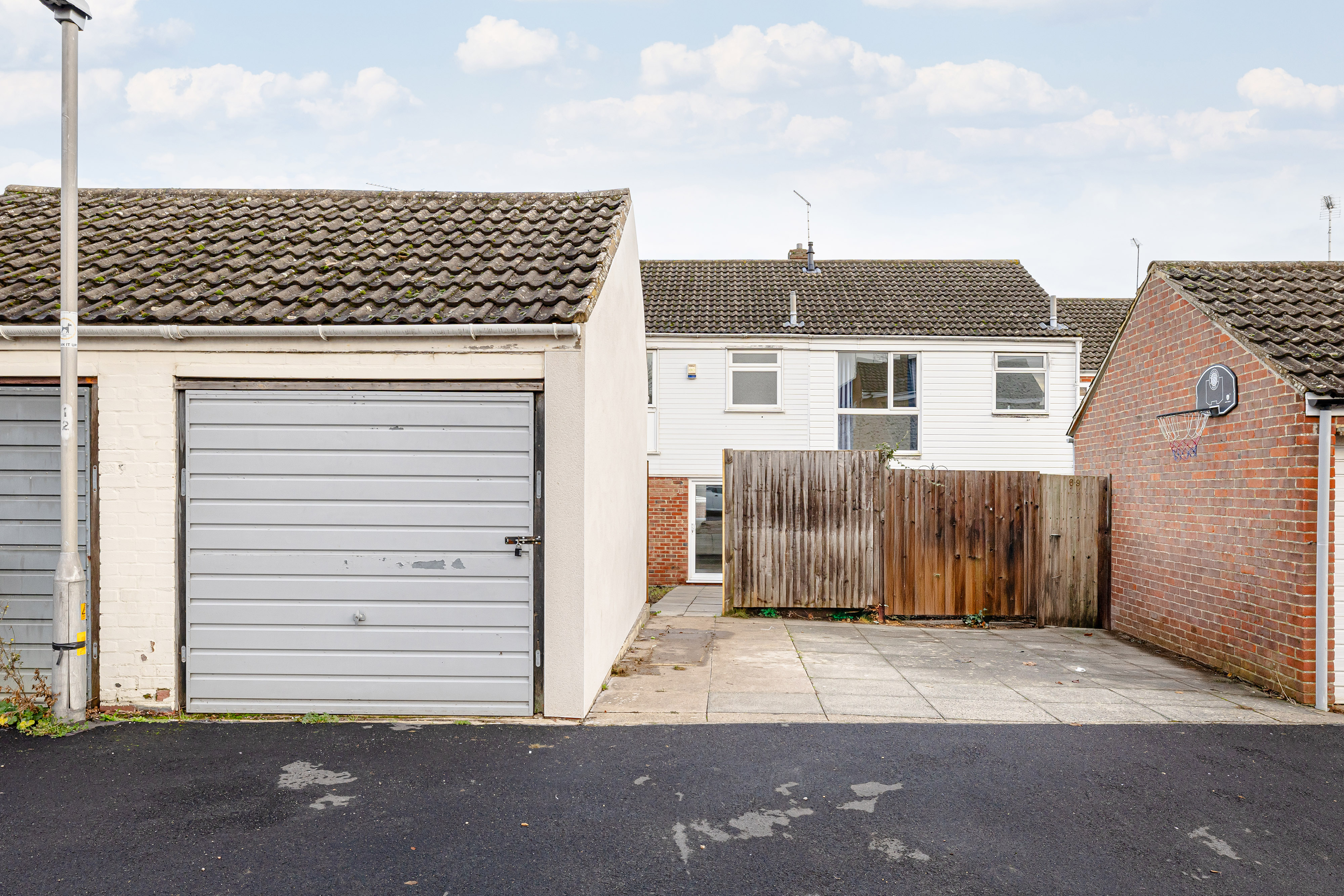 Outside, the rear garden offers both privacy and potential, with a paved terrace leading onto a lawned area that has recently been seeded. A rear gate opens to the property’s off-street parking and single garage, accessed from Orchard Close, providing welcome storage and day-to-day convenience. The front of the property remains pedestrian-only, giving a more peaceful approach.