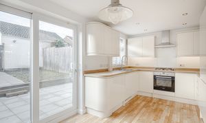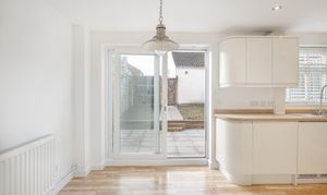 - Stylish open-plan kitchen/dining space with sliding patio doors to the garden