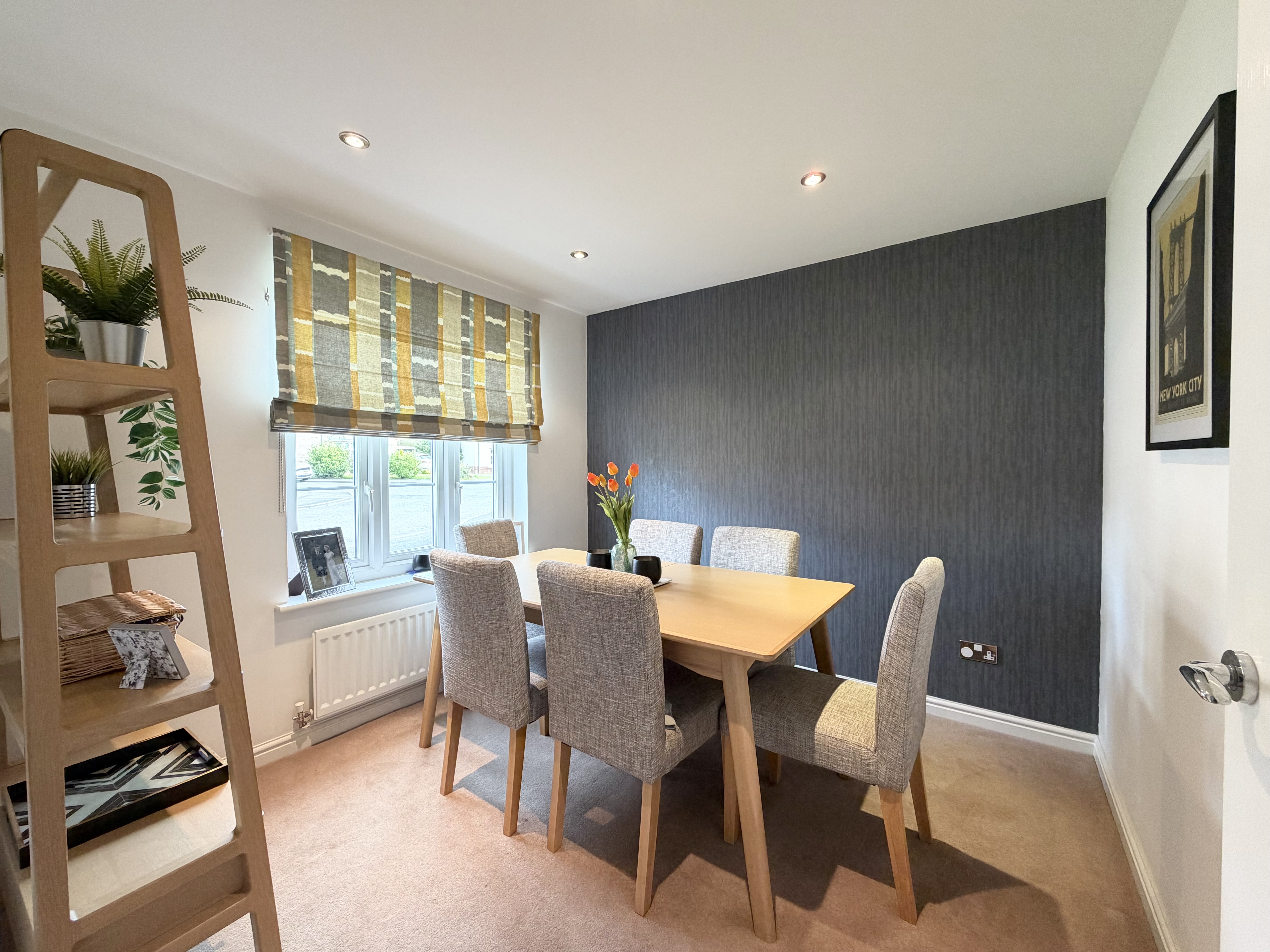 The property welcomes you with a generous entrance hallway, complete with a practical under-stair cupboard and a convenient WC. To the front, you will find a bright dining room, perfect for entertaining, and a versatile office that is currently used as a playroom. The well-proportioned living room features recessed lighting and French doors that open directly to the rear garden, creating a seamless indoor-outdoor flow. The contemporary kitchen diner is finished to a high standard with integrated appliances and luxurious granite worktops, while additional French doors provide further access to the garden. A separate utility room adds to the practicality of the ground floor. Upstairs, the spacious landing includes a large storage cupboard and there are four double bedrooms, with the master and second bedroom benefitting from fitted wardrobes. The master bedroom also enjoys a modern en-suite shower room with a mains powered shower. The family bathroom features a mains powered shower over the bath, catering to the needs of a growing family. The property is kept comfortable all year round with gas central heating and a recently serviced boiler.