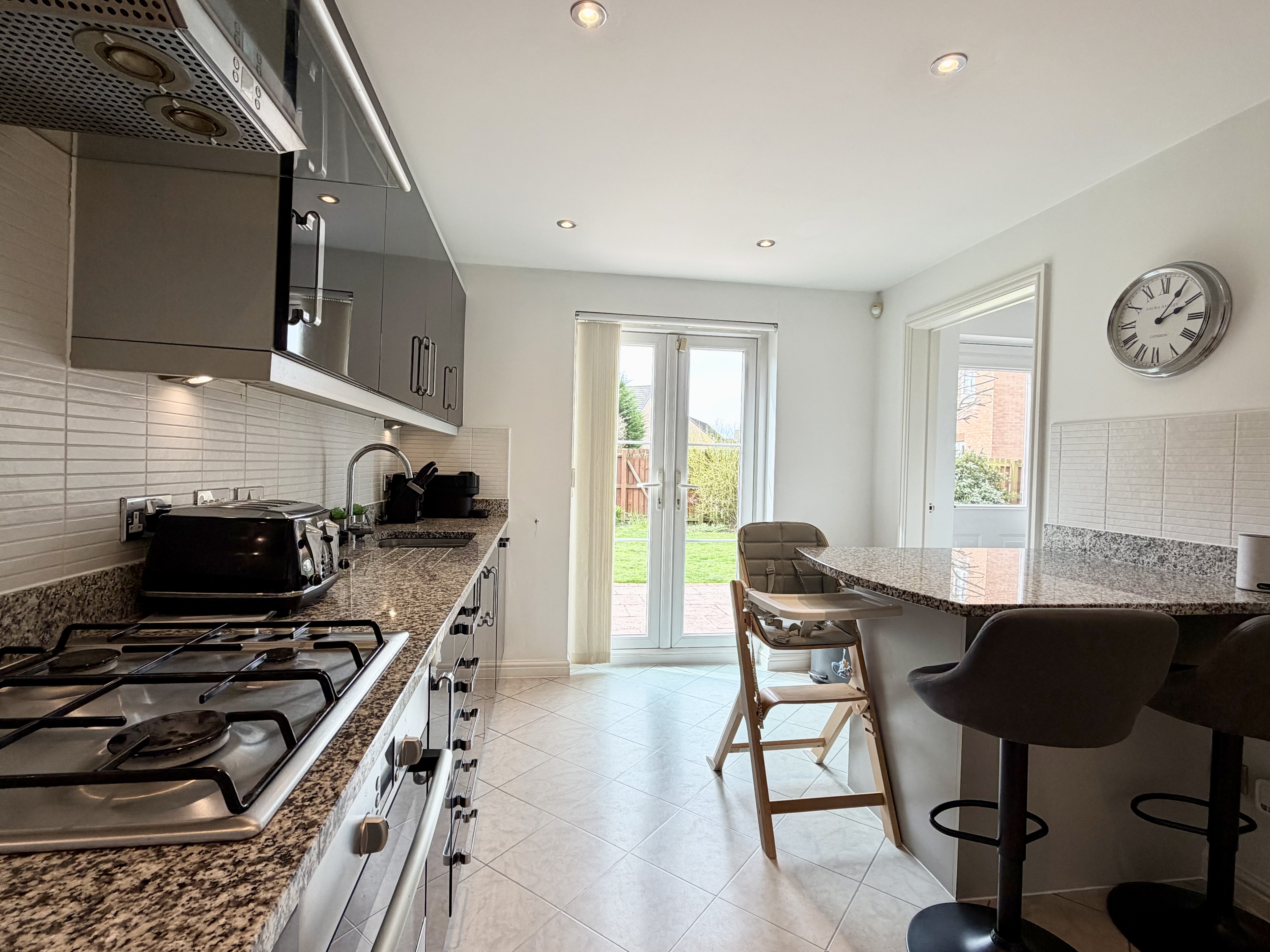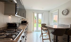 The outside space is equally impressive, with a large and fully enclosed rear garden that offers both privacy and security for families and pets. Accessed from both the living room and kitchen via French doors, the garden provides an excellent setting for outdoor dining, relaxation, or children's play. The property also benefits from a detached single garage and a driveway, offering ample off-street parking and additional storage. This fabulous home is ideally located just a short walk from Newton railway station, making it perfect for commuters, and is within easy reach of local primary schools and amenities. This property combines stylish interiors with generous outdoor space, making it a superb choice for families seeking comfort, convenience, and a welcoming community environment.
