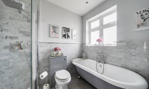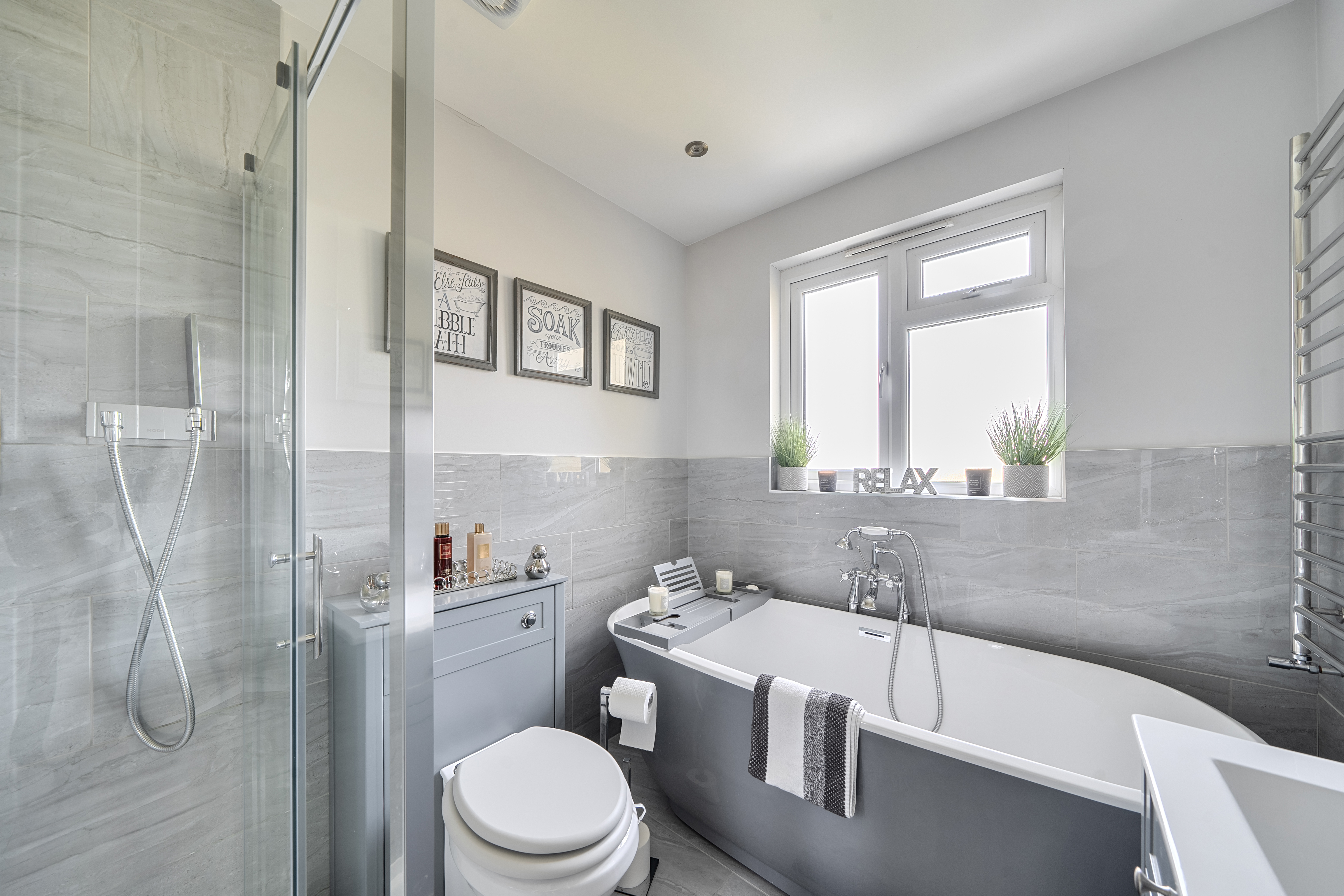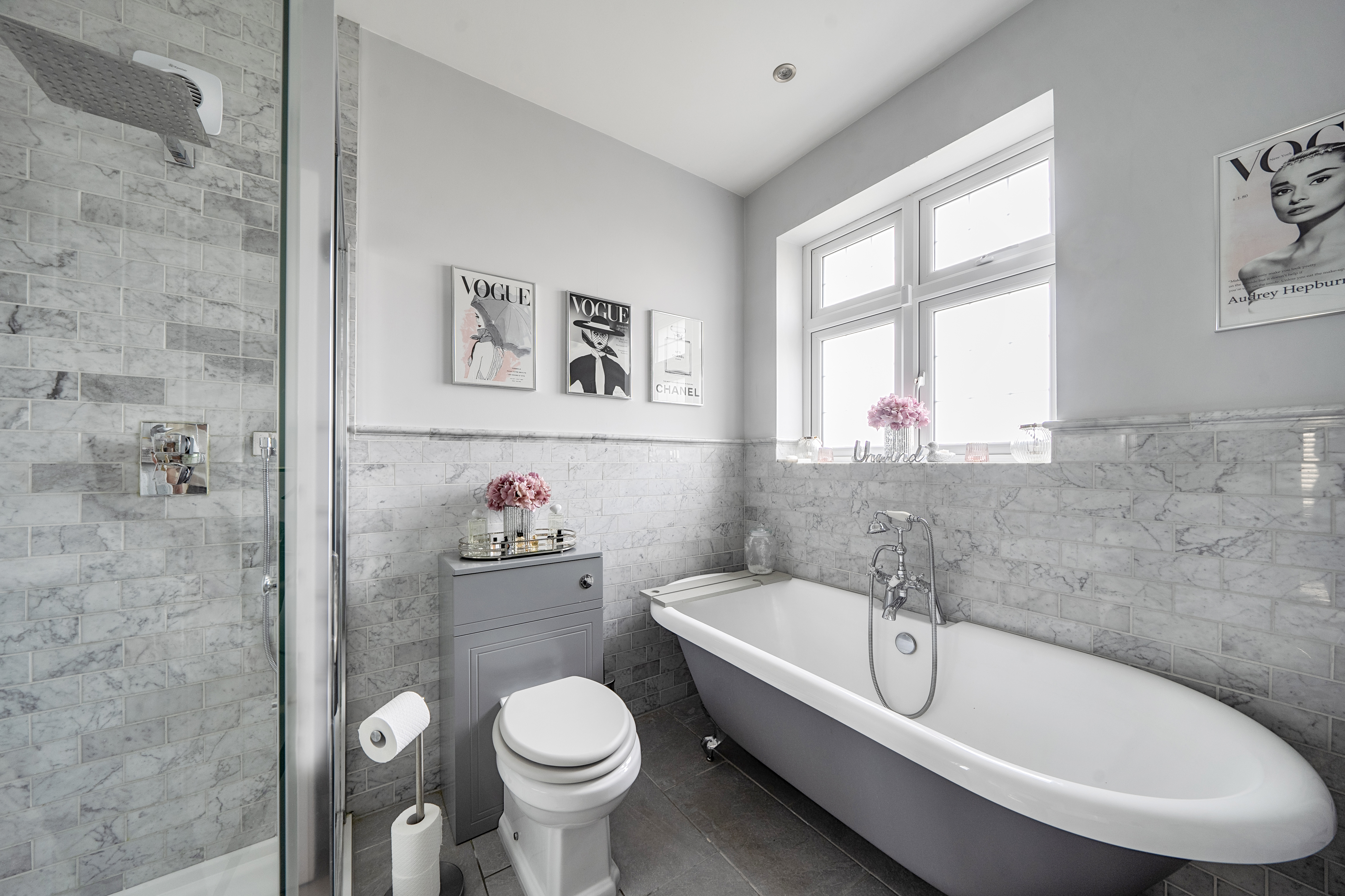 On the first floor, you have three well-proportioned bedrooms and family bathroom, while the top floor comprises of your master bedroom and second bathroom. Both bathrooms offer a bath and a separate shower for added convenience.