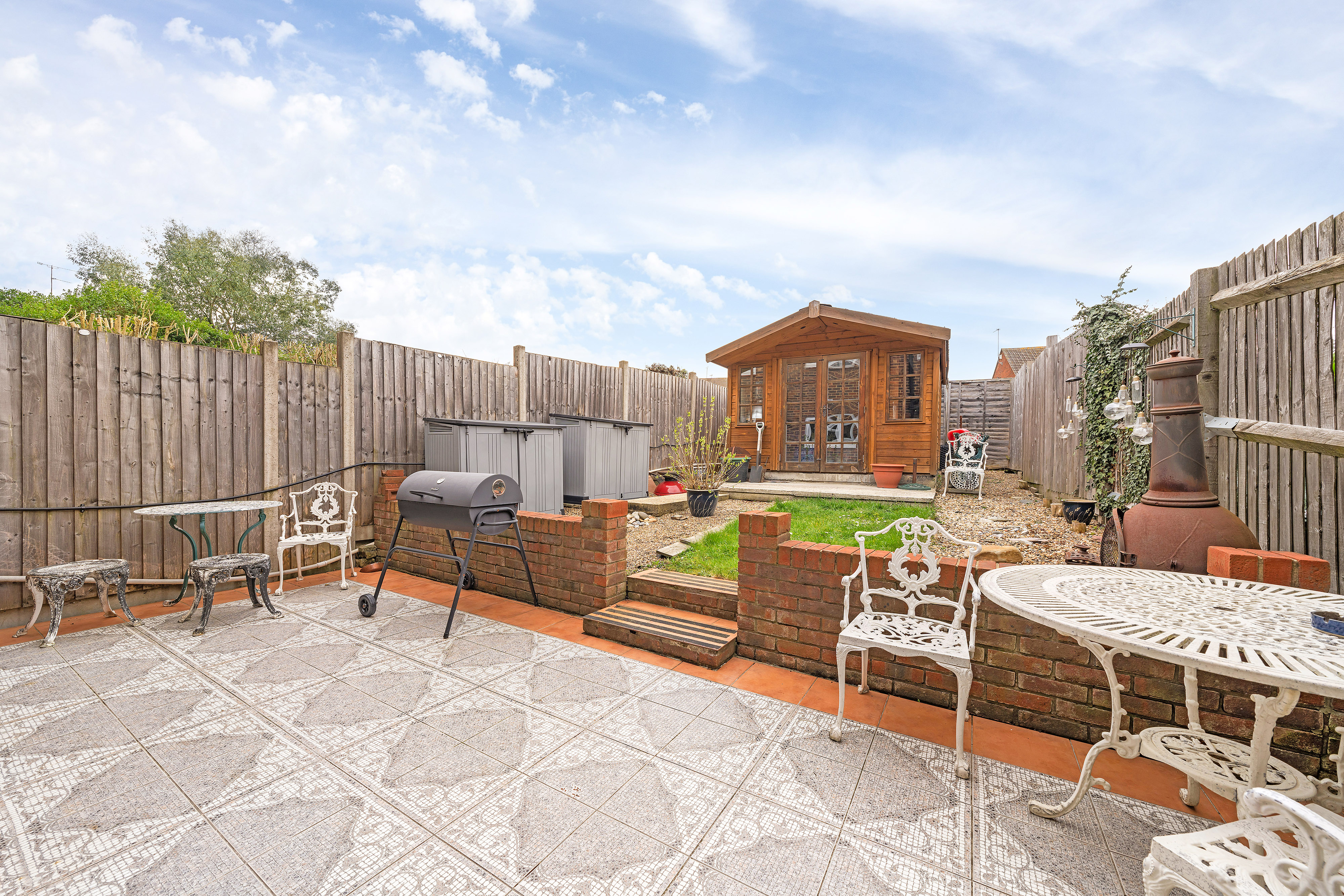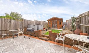 Externally, the property boasts an impressive rear garden with a spacious patio area, ideal for al fresco dining or summer gatherings. The garden further benefits from a shed, providing useful storage space for gardening tools or outdoor equipment. To the front of the property, there is a good-sized garden, mainly laid to lawn.