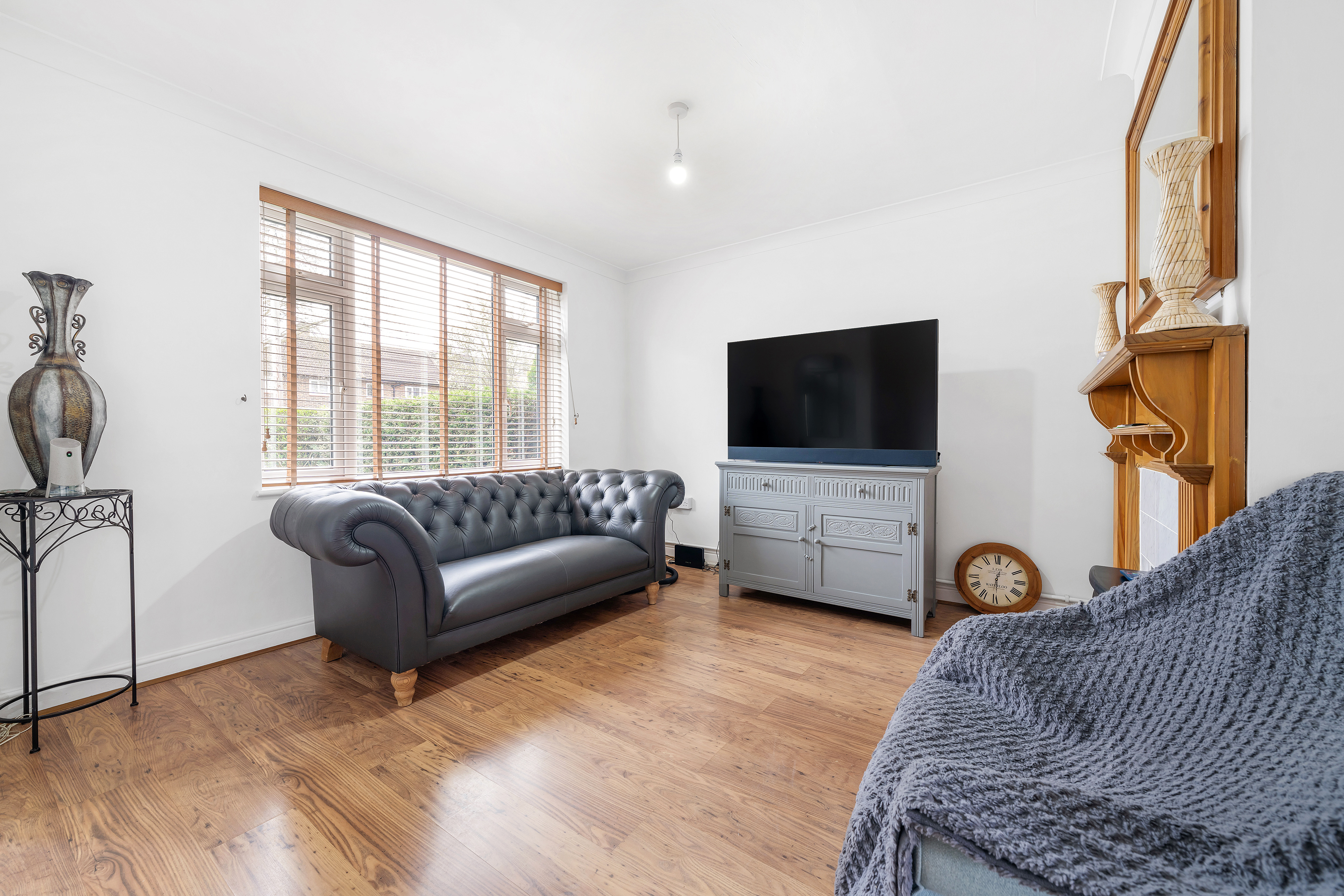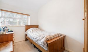To the first floor are three bedrooms generously proportioned, offering ample space for storage and furnishings with a neutral décor and well-maintained interiors. The family bathroom features a panelled bath with shower and attachment with mixer taps and a wash hand basin on pedestal.