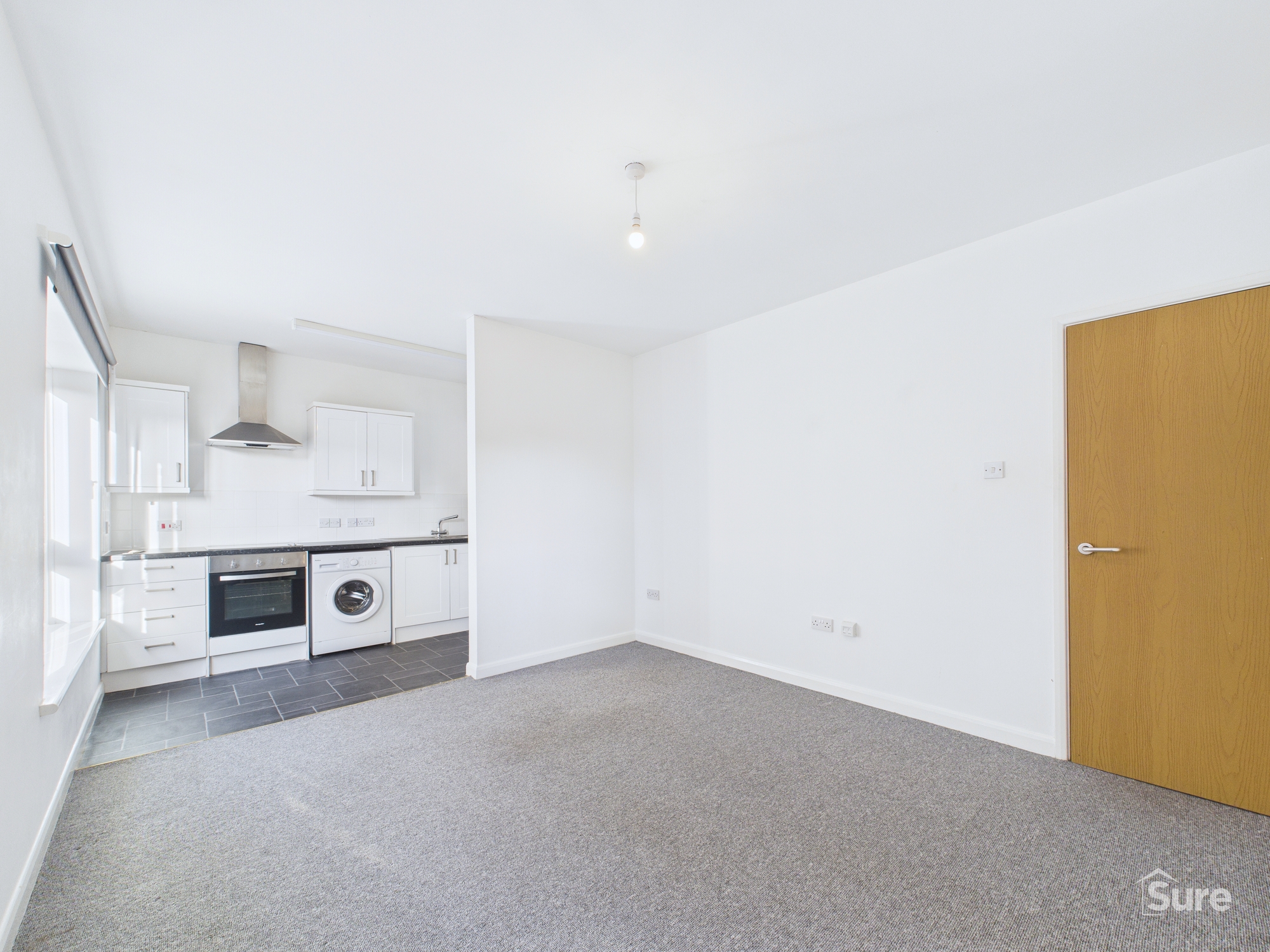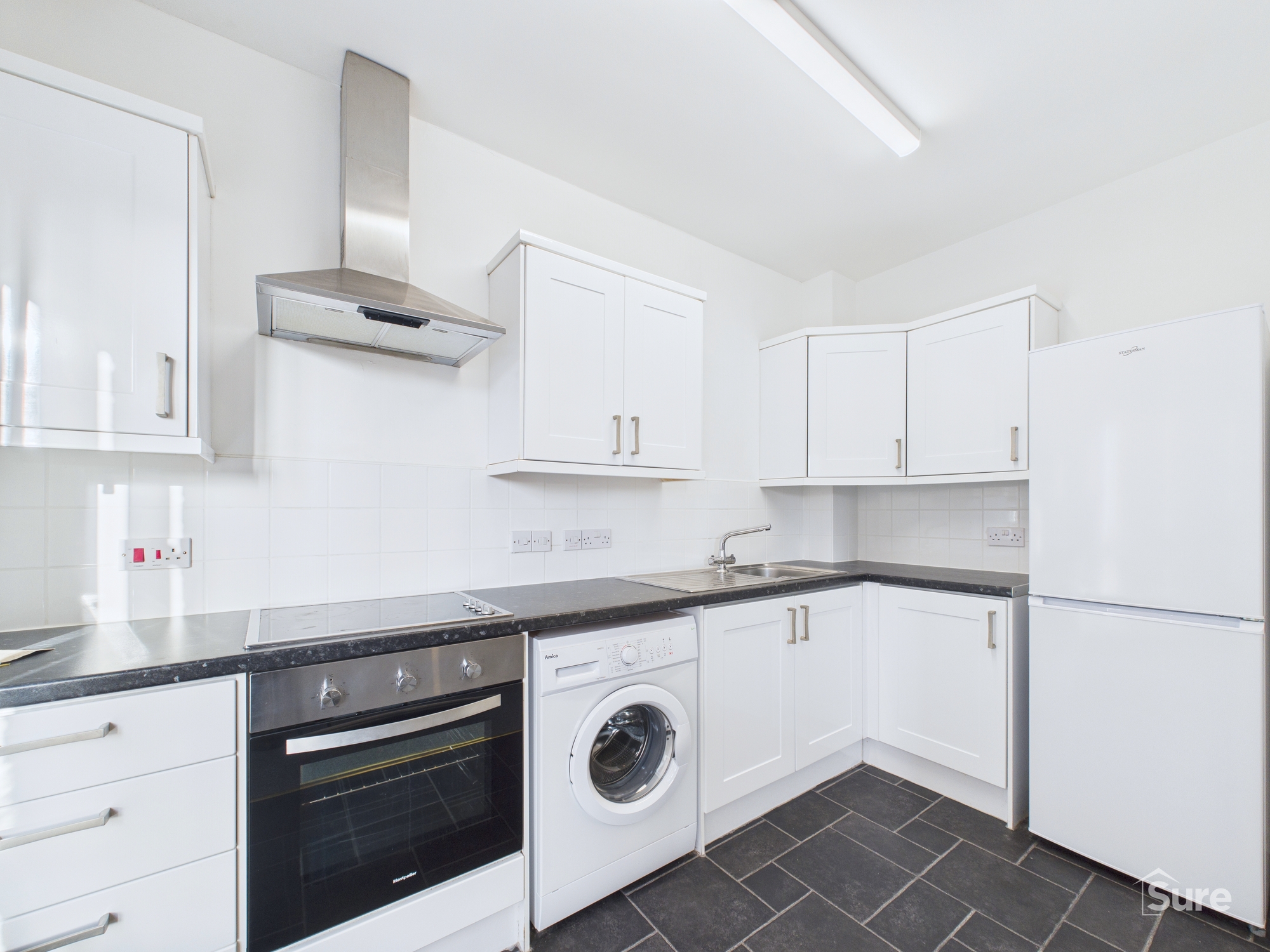 The property is accessed via a communal entrance off Charldace Walk and features a spacious lounge with open-plan kitchen, complete with appliances including electric hob and oven with extractor hood over, free-standing washing machine and fridge freezer. The double bedroom is fitted with built in wardrobes, and a three-piece bathroom with shower over bath, pedastal wash hand basin and WC complete this wonderful apartment.
