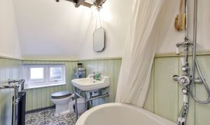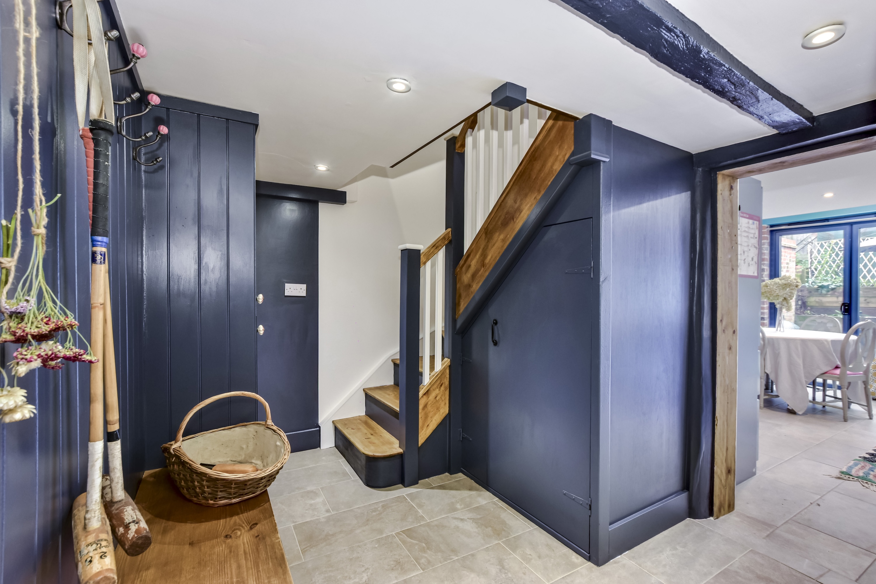 Entering on the ground floor, you are greeted by a traditional boot room which offers tasteful storage for coats and shoes, as well as a guest W/C. This central space gives you access to the main family room and the kitchen-diner. The former is part of the original section of the house built in the 17th Century - this spacious and comfortable room is brimming with character, whilst the kitchen-diner sits at the rear of the house and is part of a new extension. The kitchen itself has been fitted in a classic shaker design, with traditional chrome fittings and high quality quartz worktops and upstands, whilst the bi-folding doors and roof light flood the room with light, with the vaulted ceiling giving a wonderful sense of space.