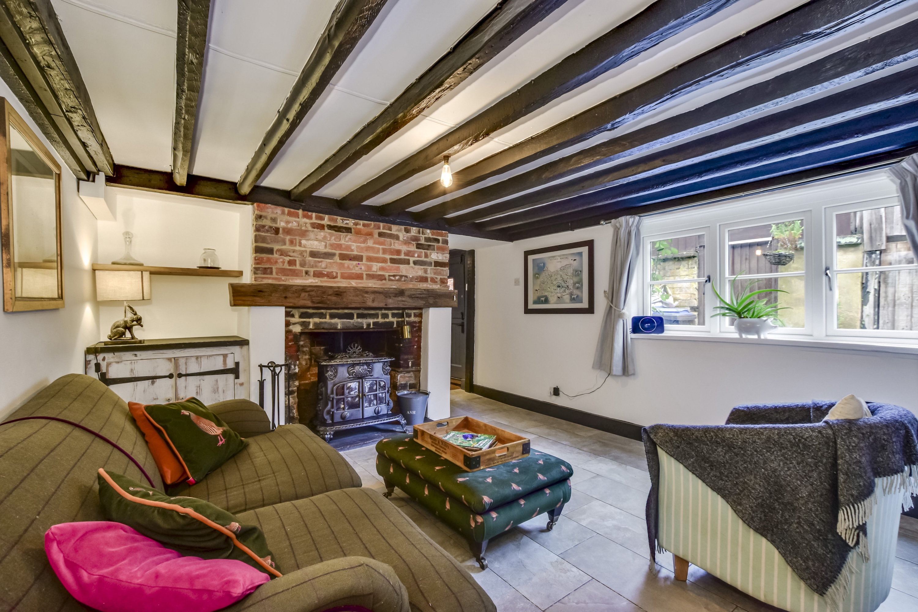 Situated in a particularly secluded position just off Kings Langley High Street is this fully refurbished a charming Grade II Listed home. Perfectly positioned within just a stones throw of all the local shops, cafes and facilities that Kings Langley has to offer, the current owners have sympathetically restored and extended this wonderful home, to create a well thought out and flexible space that suits every day family life. A wealth of character features have been retained, such as antique oak wooden flooring, exposed beams and original brick built fireplace with log burning stove, yet it also benefits from more modern conveniences including bi-folding doors and underfloor heating throughout downstairs.