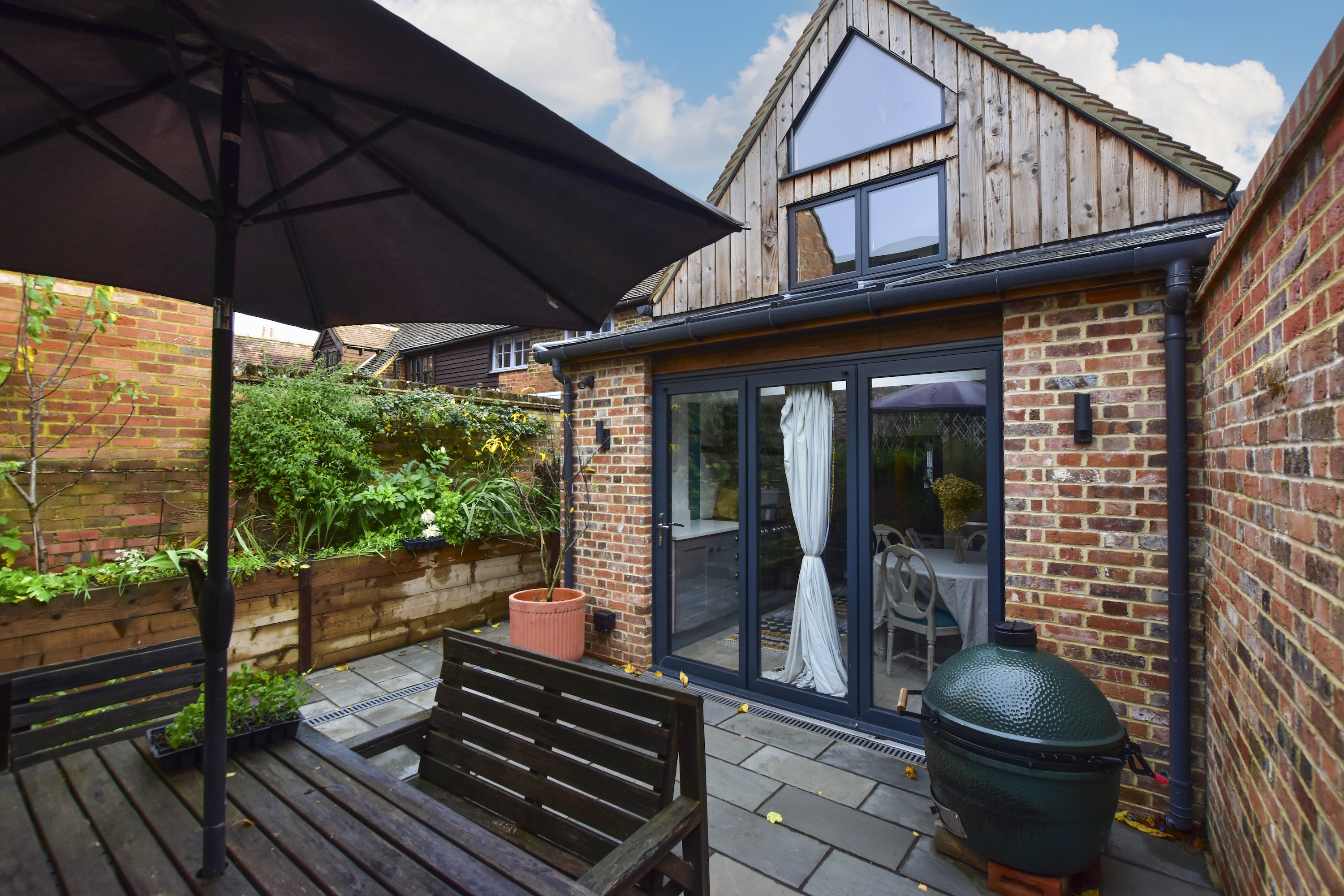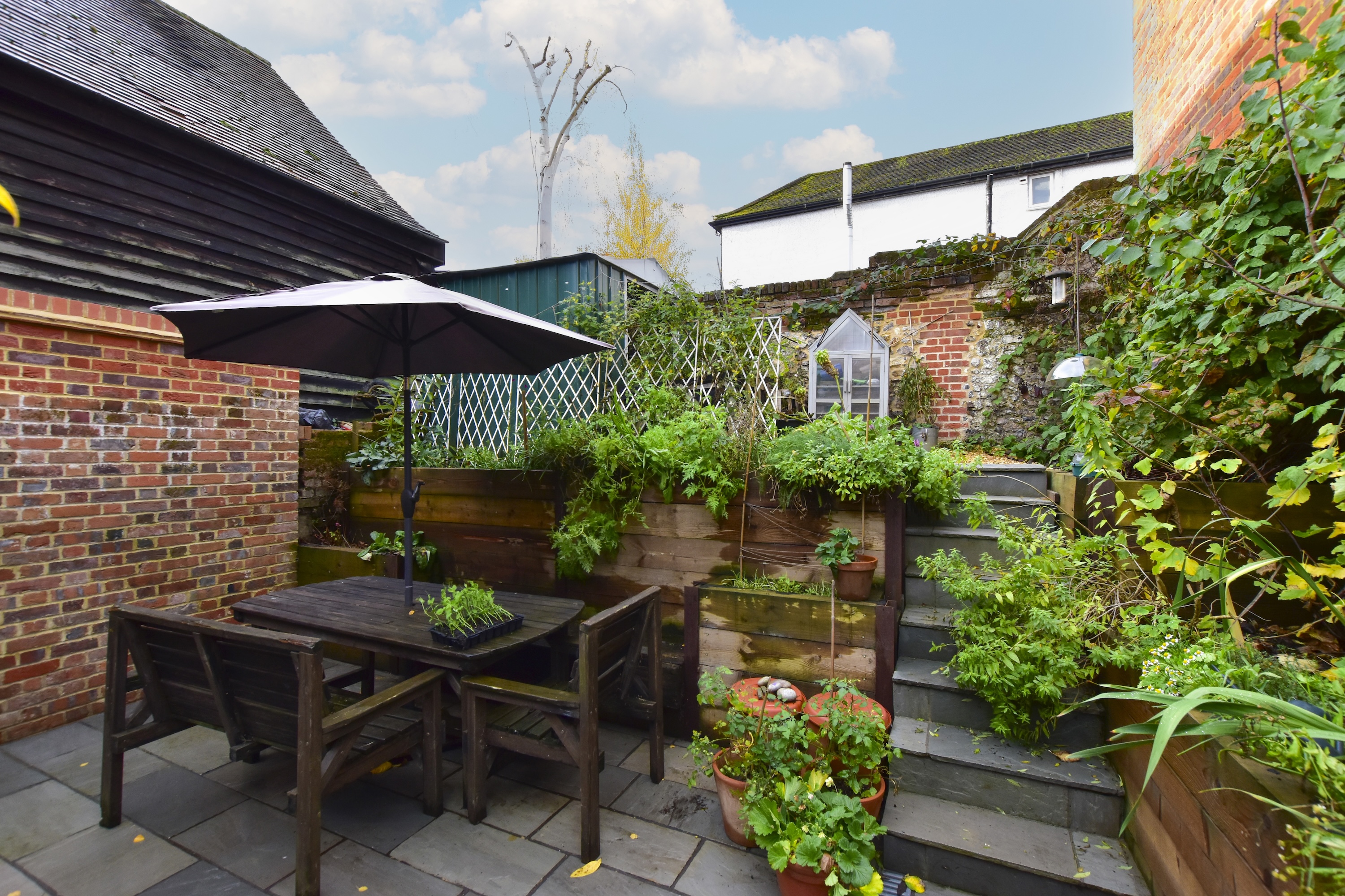 Externally, the West-facing courtyard style garden flows directly out from the house and is a wonderful space to sit and entertain with complete privacy. Additionally, there is a raised vegetable patch and fully stocked borders which come complete with blackberries, loganberries, white currants as well as mature flowering perennials.