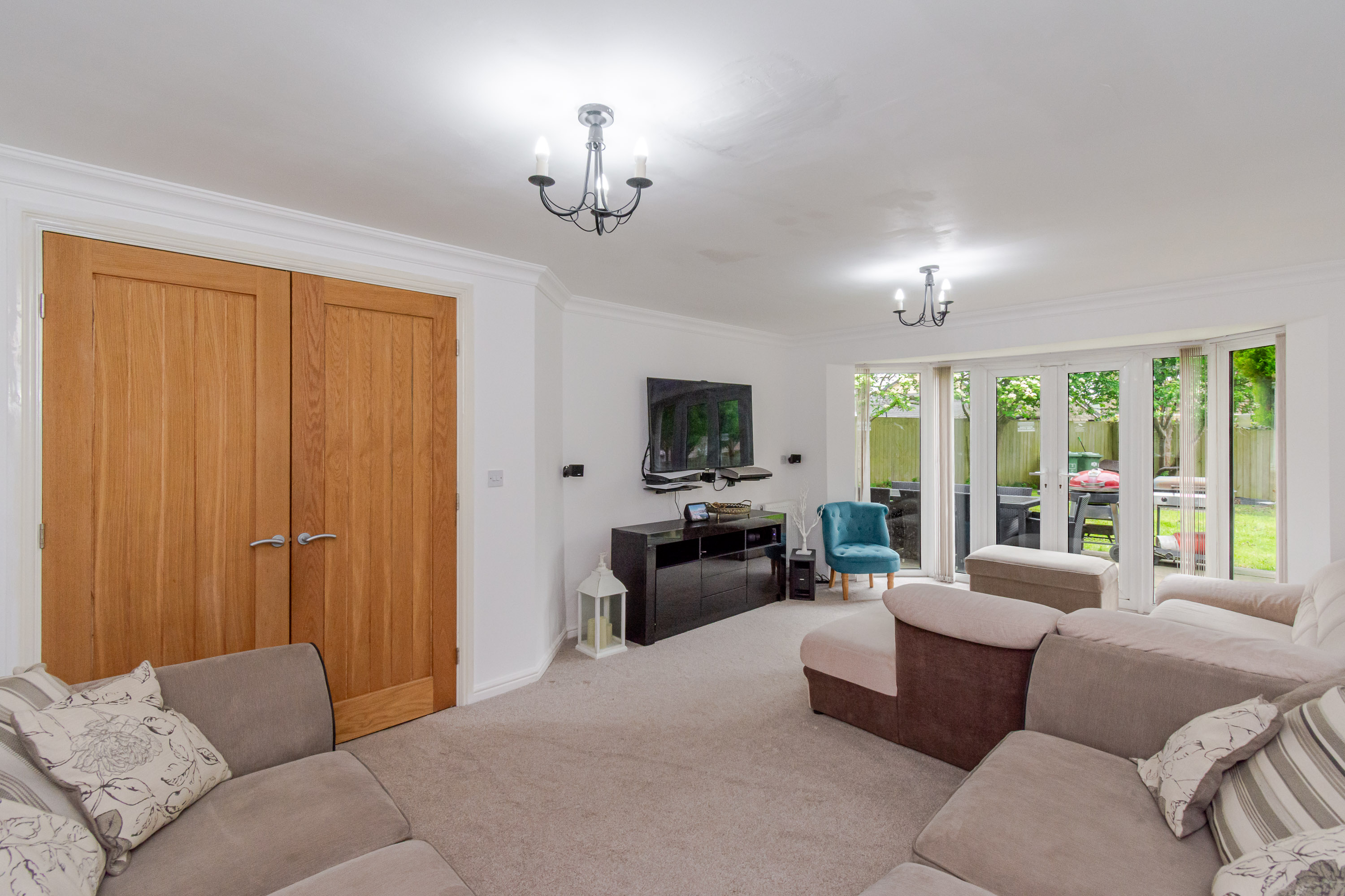This generously proportioned principal reception room is situated to the rear of the property and accessed through twin oak doors from the main hallway, there are a bank of windows which incorporate French doors, these provide the room with plenty of natural light and take advantage of a pleasant aspect over the rear garden. There are two ceiling light points, ceiling coving, two wall light points, three central heating radiators and one end there are twin timber panelled and bevelled glass doors which open into the dining room.