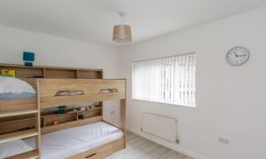 A double room with a pvcu double glazed window looking out over the rear garden, there is a ceiling light point, laminate flooring, central heating radiator and fitted floor to ceiling wardrobes.