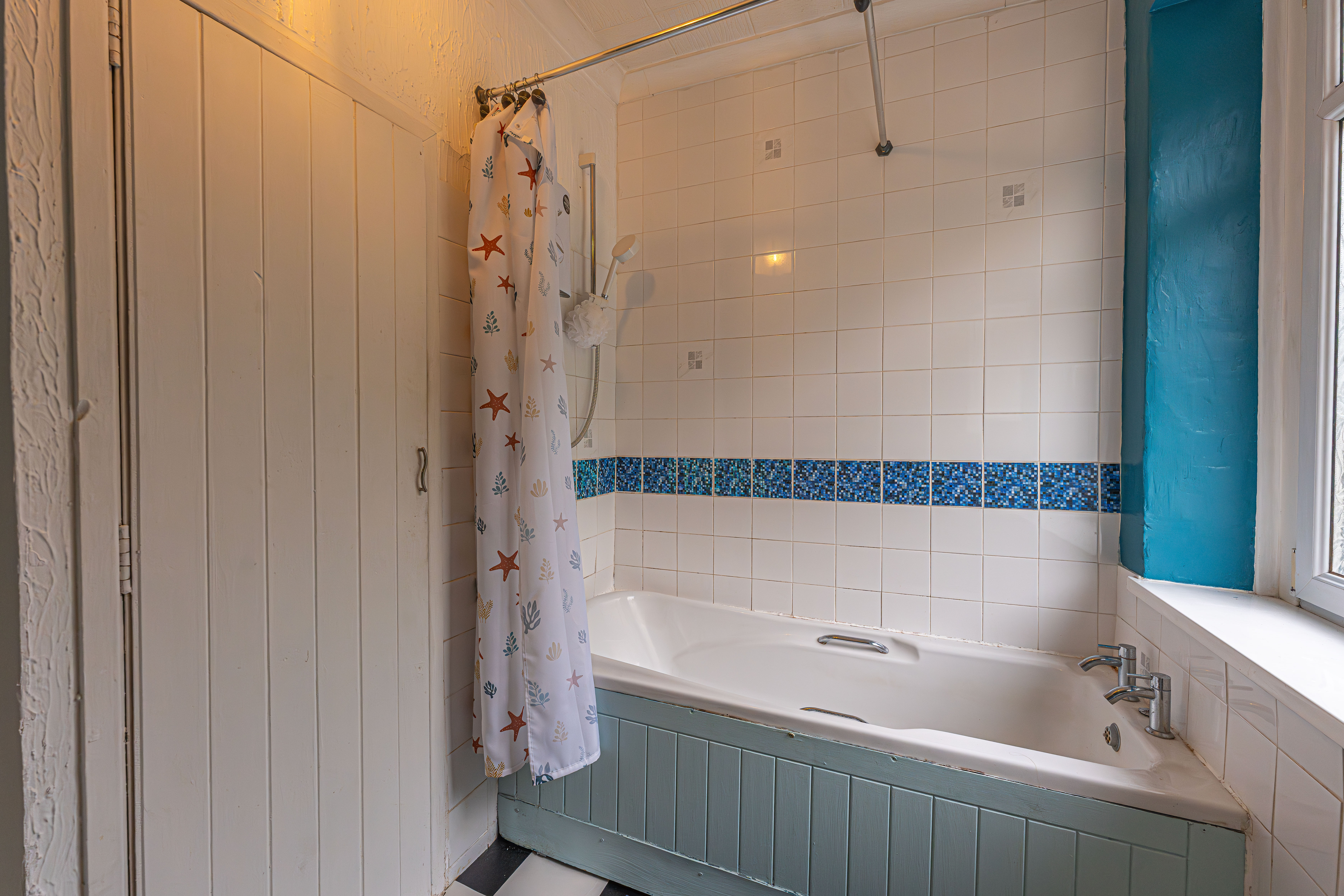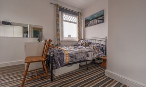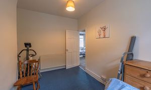 To the first floor we can find the two bedrooms, both of which are well proportioned double rooms, with the primary bedroom positioned at the front of the house, enjoying plenty of natural light thanks to dual aspect windows. The first floor also accesses the sleek family bathroom, which showcases a bath and shower suite, in addition to a helpful airing cupboard.