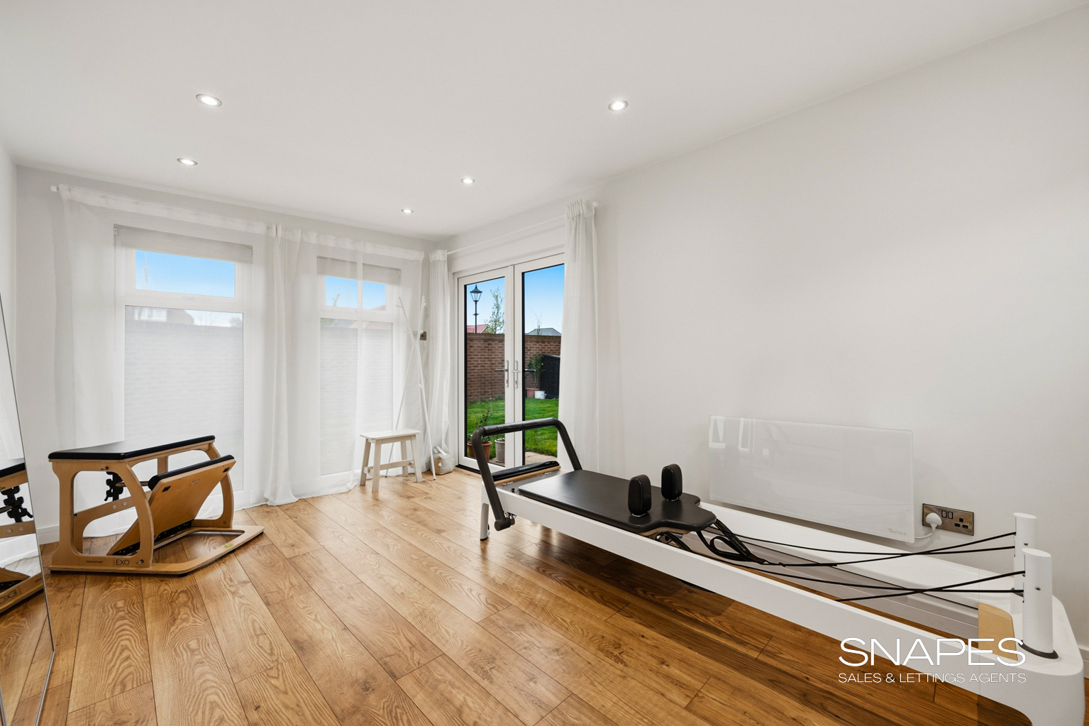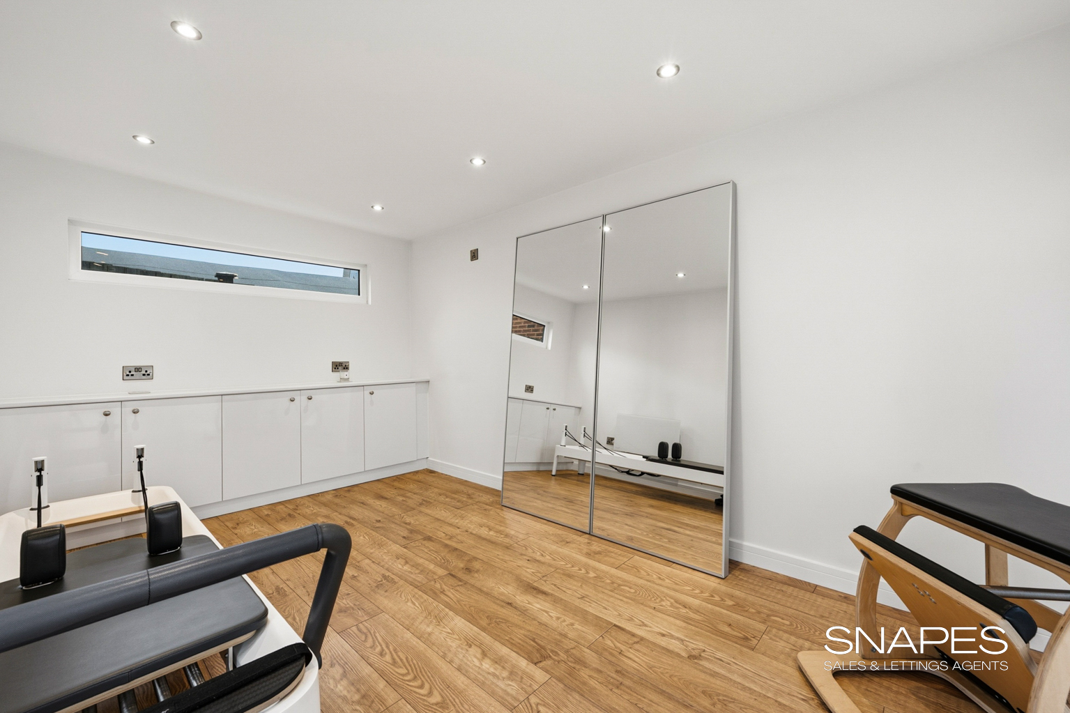 A particular highlight is the stylish garden room (see photos), offering a versatile additional space ideal for use as a home office, gym, or leisure room. Although detached, it feels very much like a natural extension of the main living accommodation.
