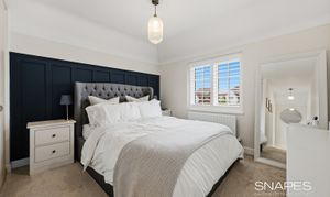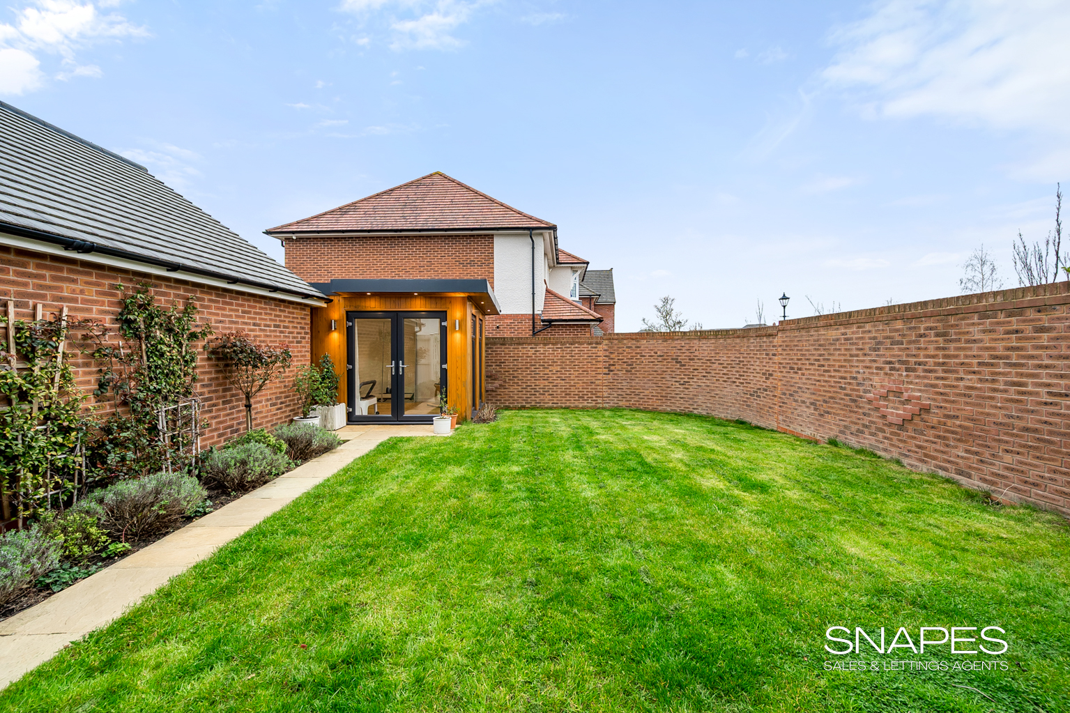 The home also benefits from a beautifully enclosed walled garden with a desirable southerly aspect, ensuring excellent natural light throughout the day. The garden is predominantly laid to lawn, complemented by thoughtfully positioned patios and pathways that create distinct yet connected outdoor spaces.