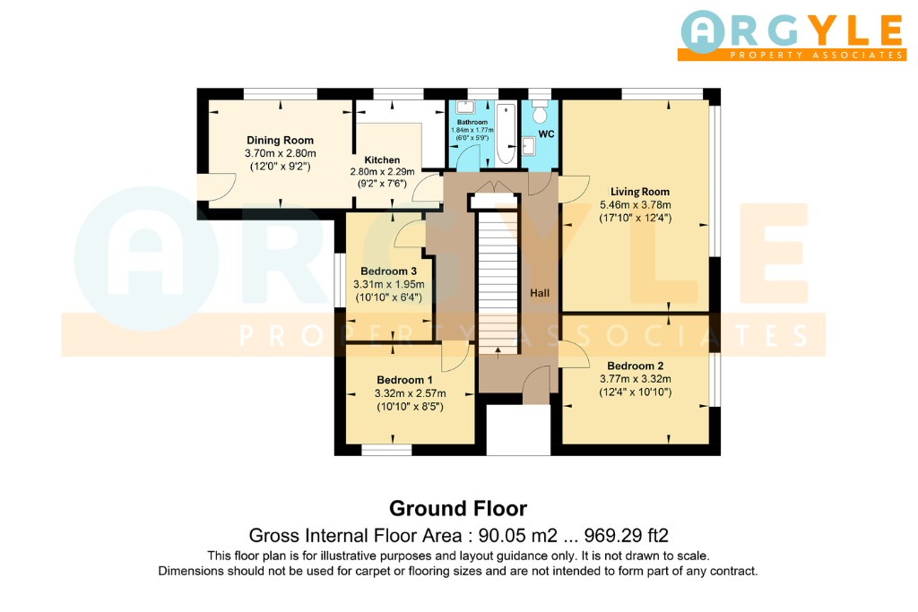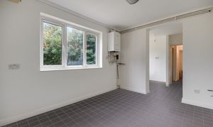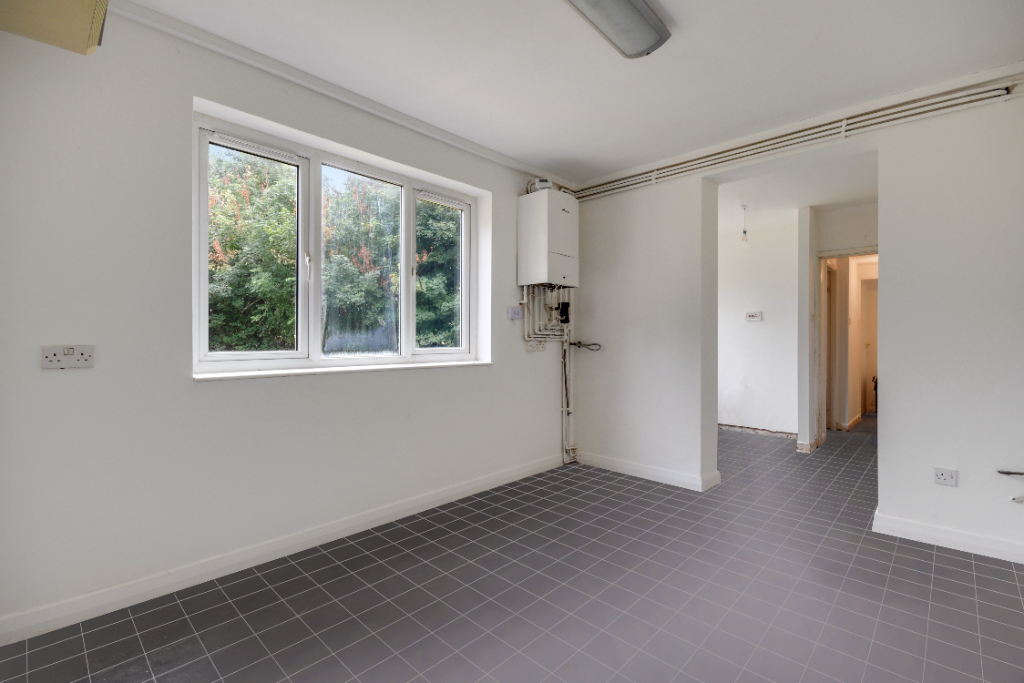 The dining room is immediately adjacent to the kitchen and offers ample space for a dining table alongside additional furniture. Equipped with an easy-to-clean tile effect lino floor.