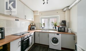 Two large double bedrooms, each featuring abundant natural light. The kitchen has been modernised with new cupboards and worktops.