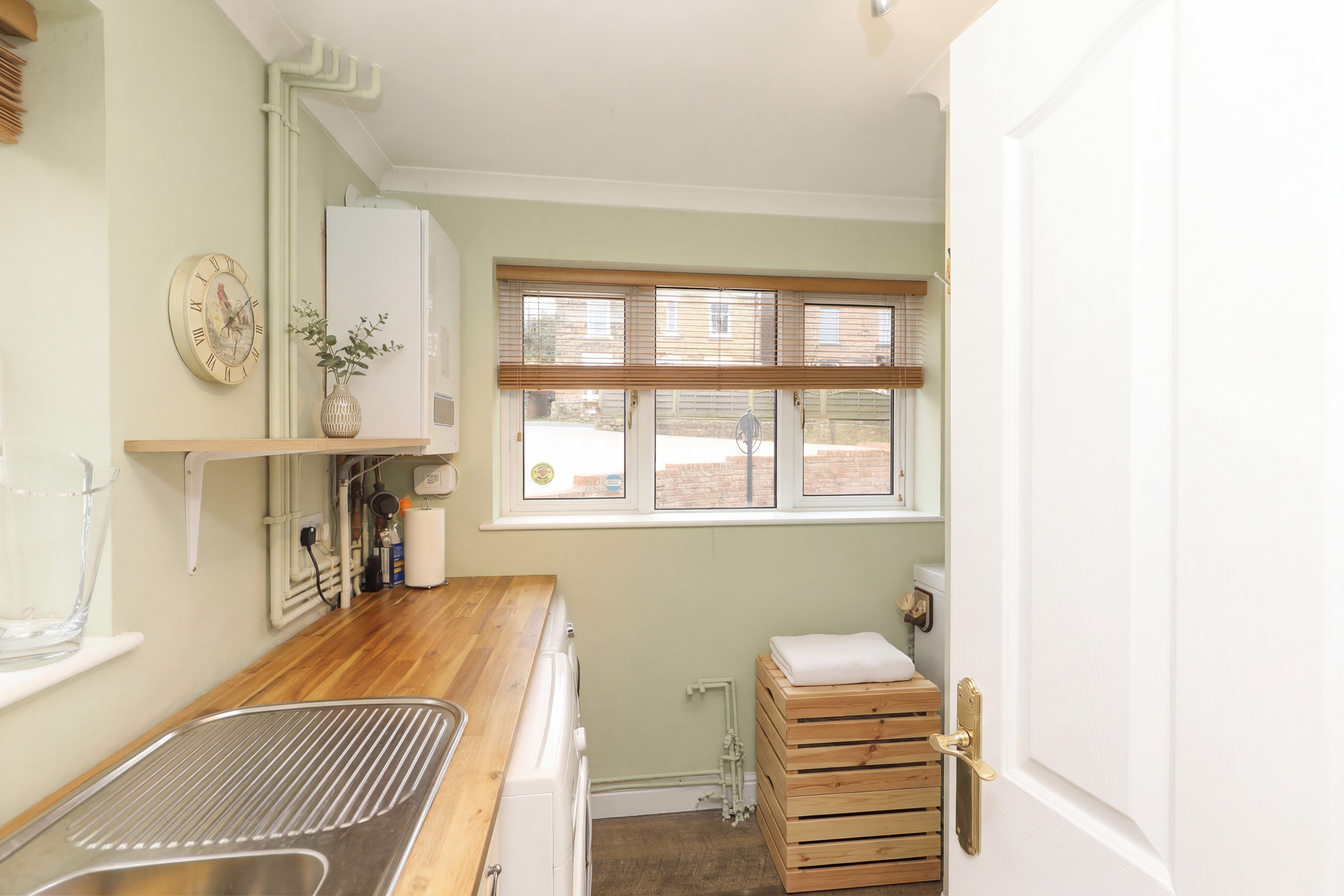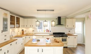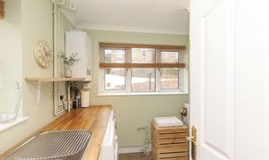 The heart of the property is the beautifully designed breakfast kitchen, finished in a classic English style with high-quality cabinetry and a central island, creating a perfect space for both everyday living and entertaining. The kitchen offers ample preparation space and storage, while maintaining a warm and inviting atmosphere. Positioned conveniently off the kitchen, is a separate utility room, providing additional practicality and keeping the main living areas clutter-free.