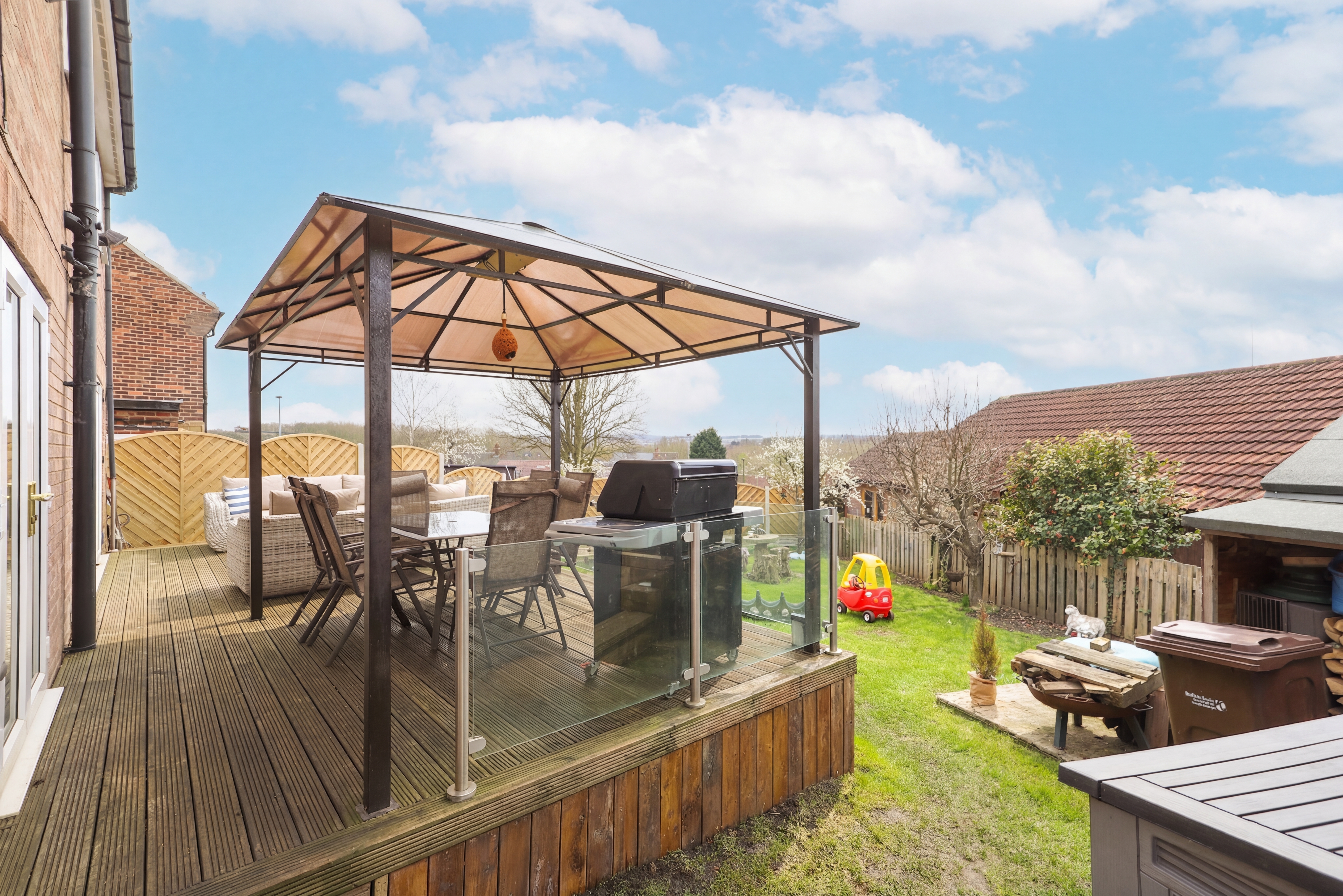 Externally, the property continues to impress. The freshly paved driveway provides extensive off-road parking, while the rear garden is arranged across multiple levels. A decked seating area offers the perfect space for outdoor entertaining, with a charming pond and lawned garden, ideal for both families and those who enjoy outdoor living.
