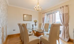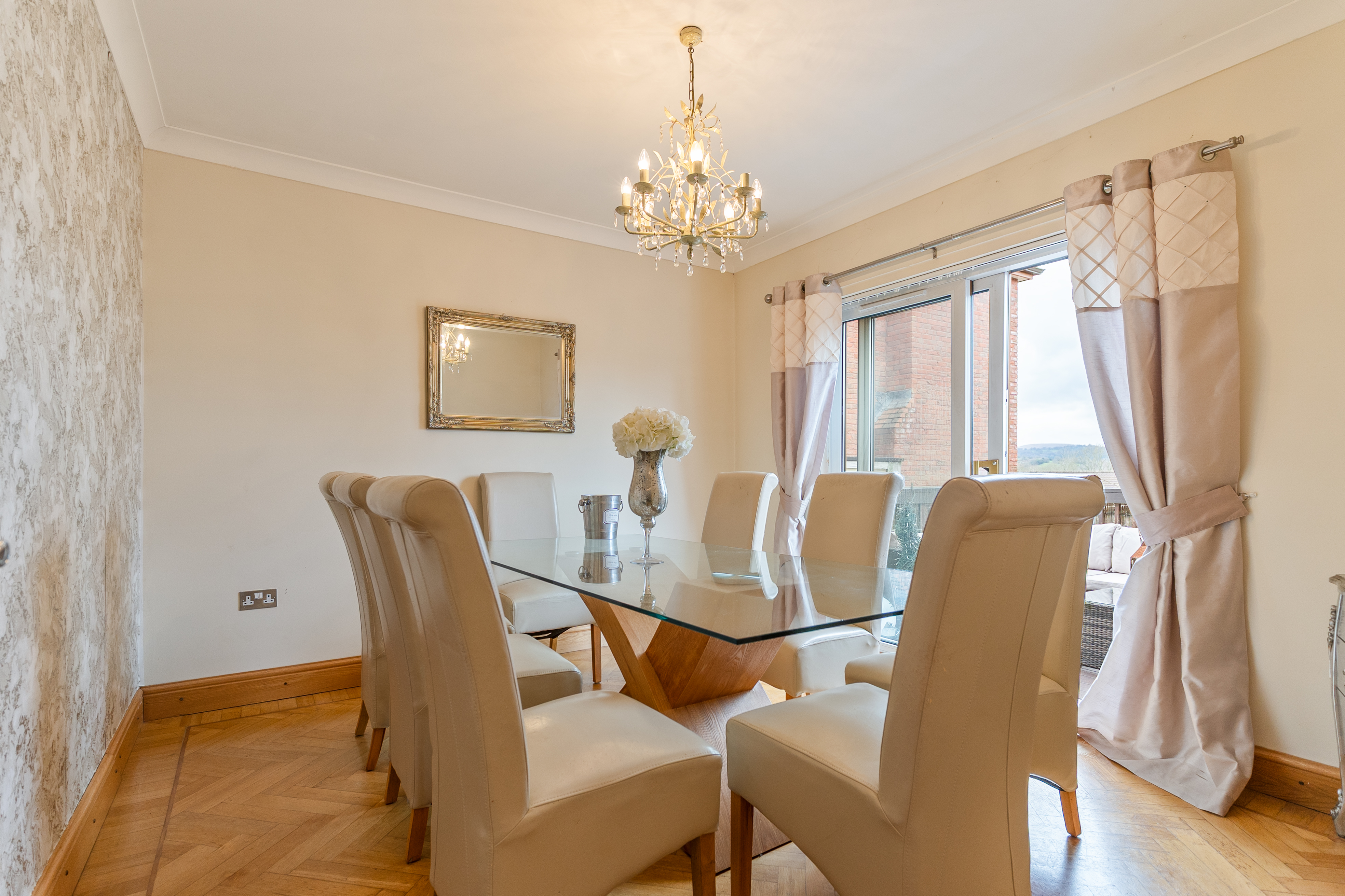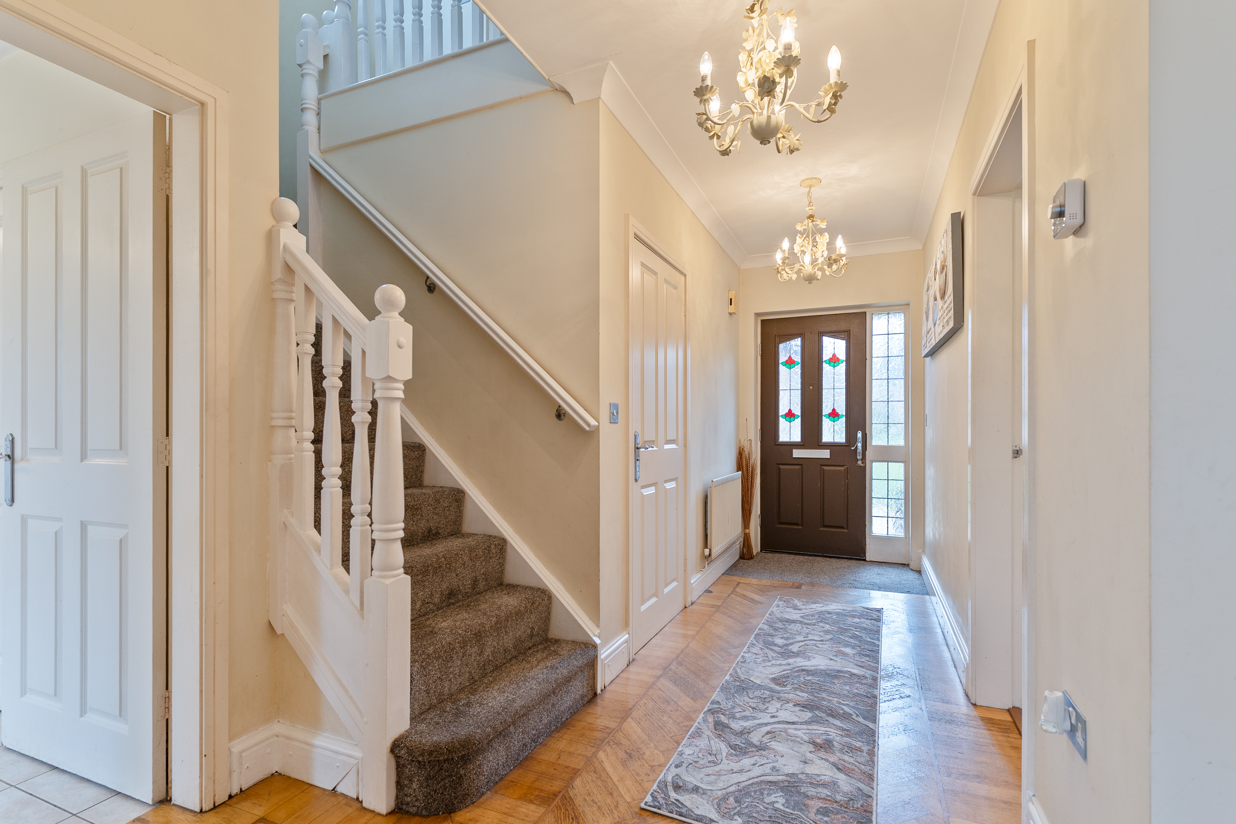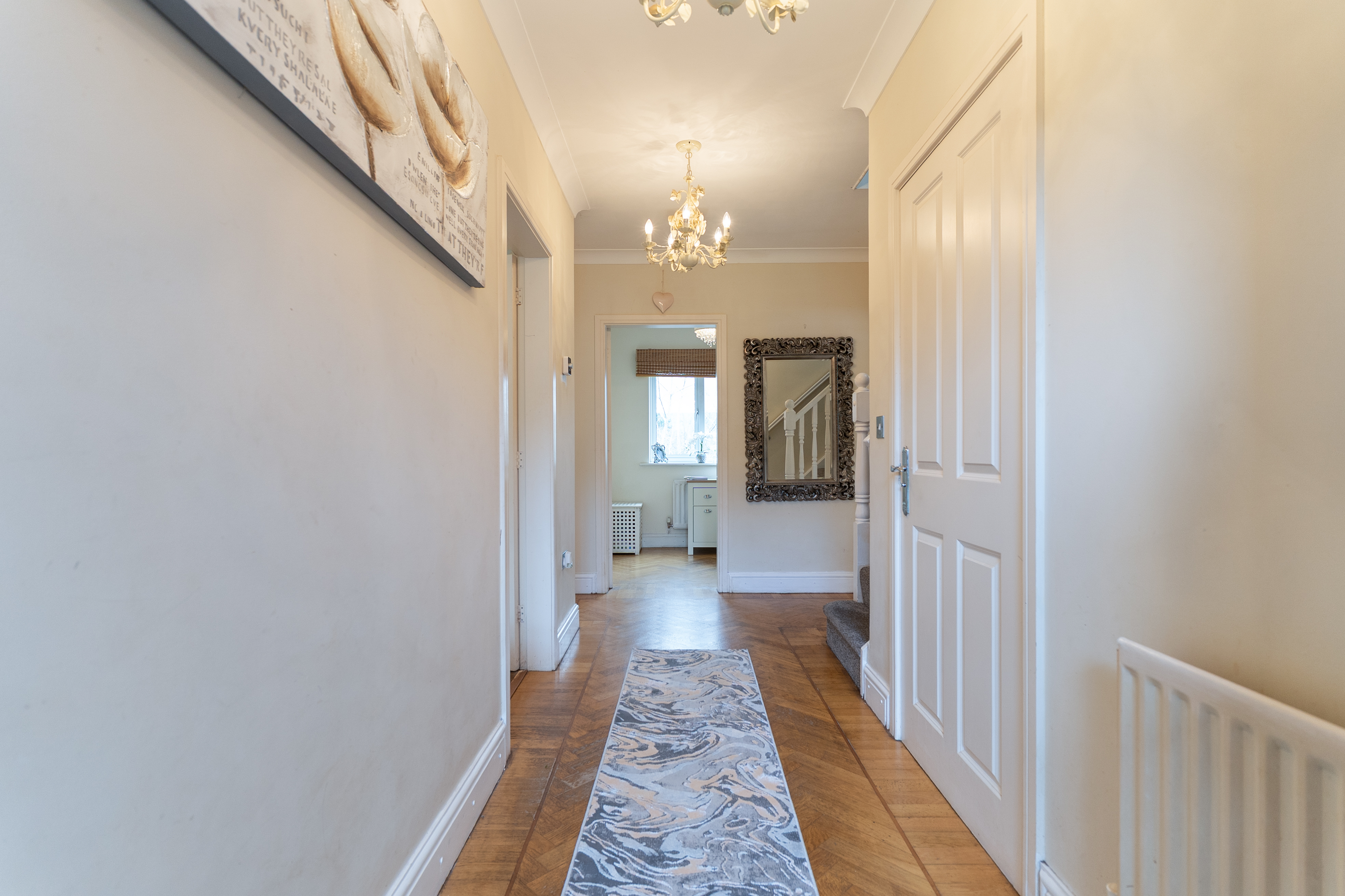 You enter the property through a welcoming hallway which provides access to the main living areas, the staircase to the first floor and a convenient cloakroom. To the left is the spacious living room, offering plenty of room for seating and creating a comfortable space for relaxing with family. Adjacent to the living room is a private dining room, ideal for formal dining or entertaining guests. A third reception room provides a versatile space that would be perfectly suited as a home office, study or additional sitting room depending on requirements. Completing the ground floor is the kitchen/breakfast room, which offers ample wall and base units along with generous worktop space and room for informal dining. From here there is access to a practical utility room, providing additional storage and laundry space.