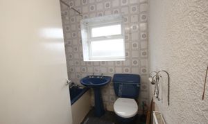 UPVC Double Glazed Window to the Rear Elevation. Royal Blue Three Piece Bathroom Suite Comprising of Low Level W.C., Hand Wash basin and Panel Bath with Mixer Shower Tap Over. Part Tiled Walls, Central Heating Radiator and Vinyl Floor Covering.