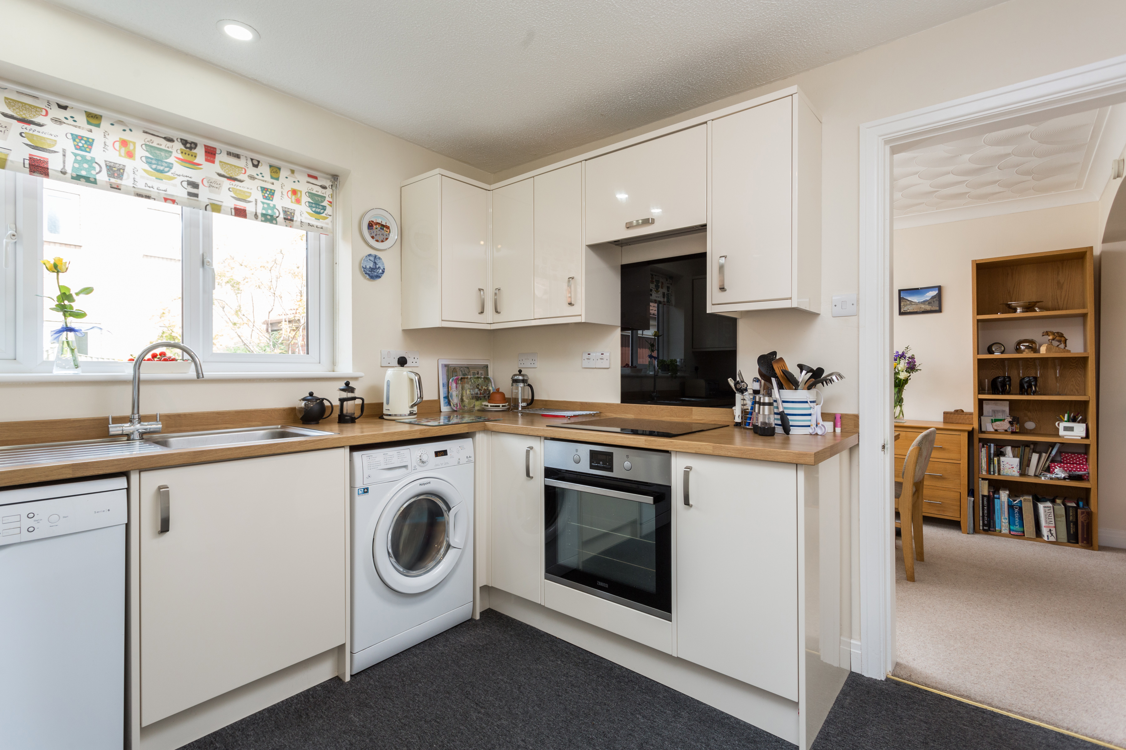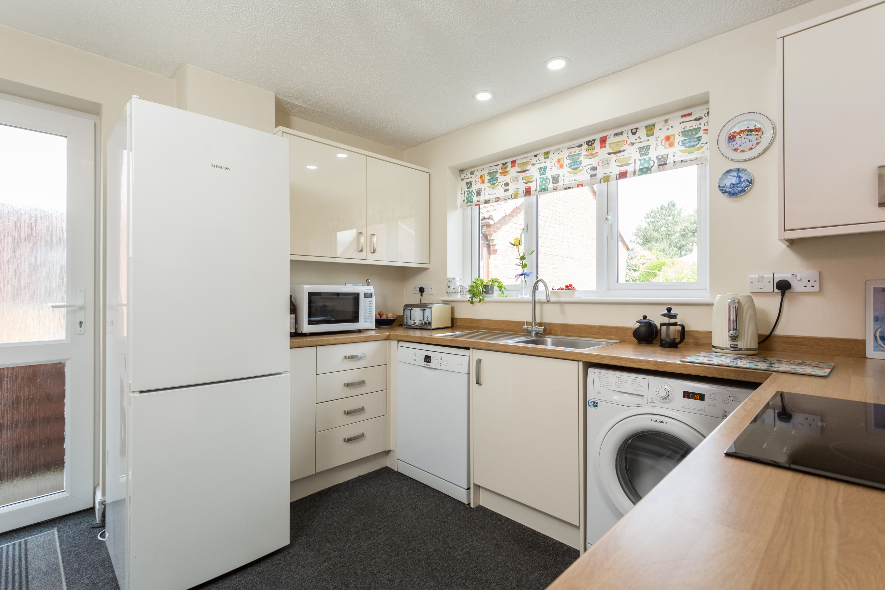 The kitchen has been replaced by the current owners and is fitted with cream base and wall units with contrasting worktops. A stainless steel sink sits beneath a window to the rear elevation. Integrated appliances include an electric oven and induction hob with extractor above and space is provided for a fridge/freezer, dishwasher and washing machine. A cupboard beneath the stairs is currently used as a pantry and comes complete with electrical points. The rear uPVC door gives access to a path at the side of the property.