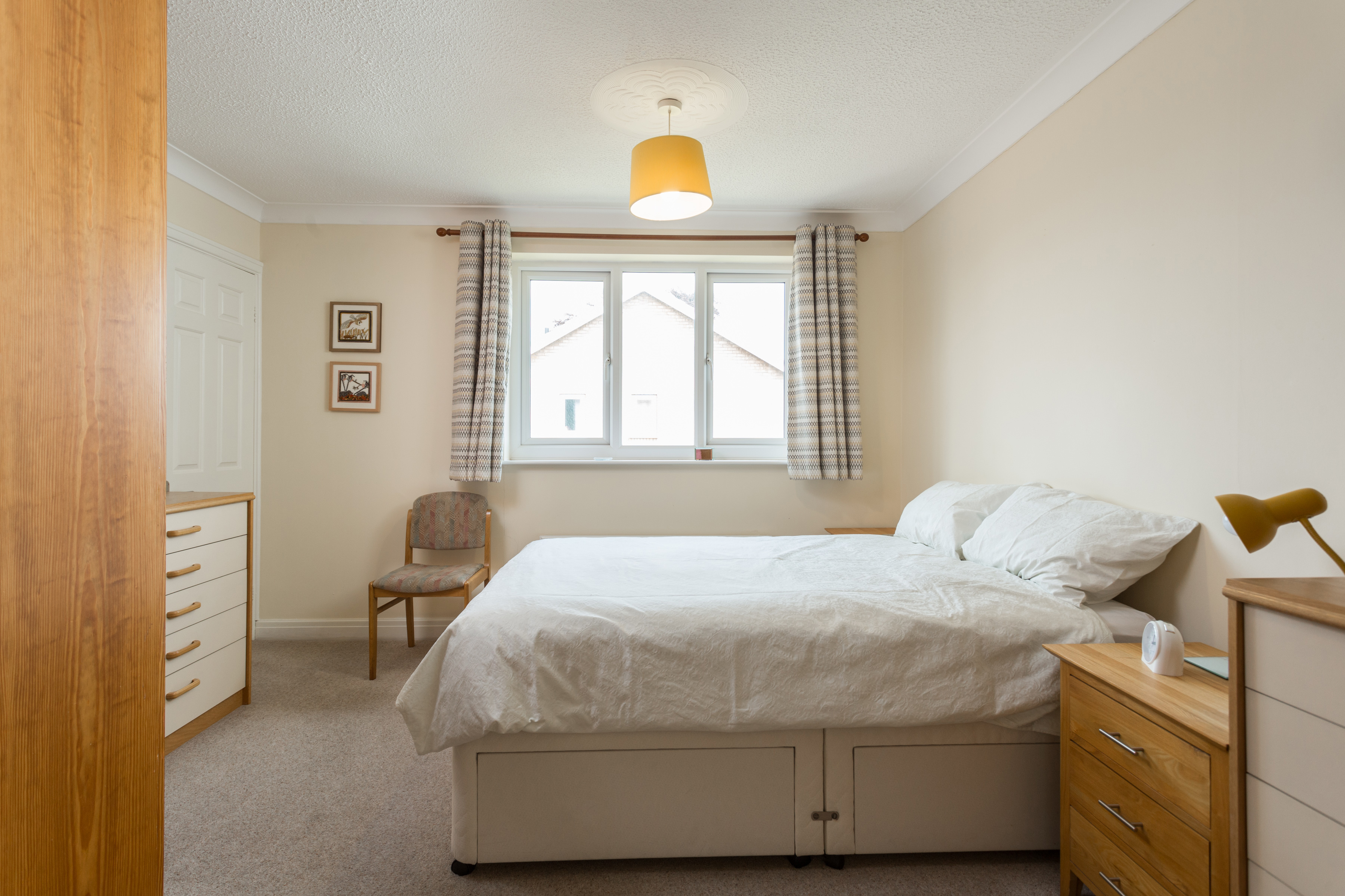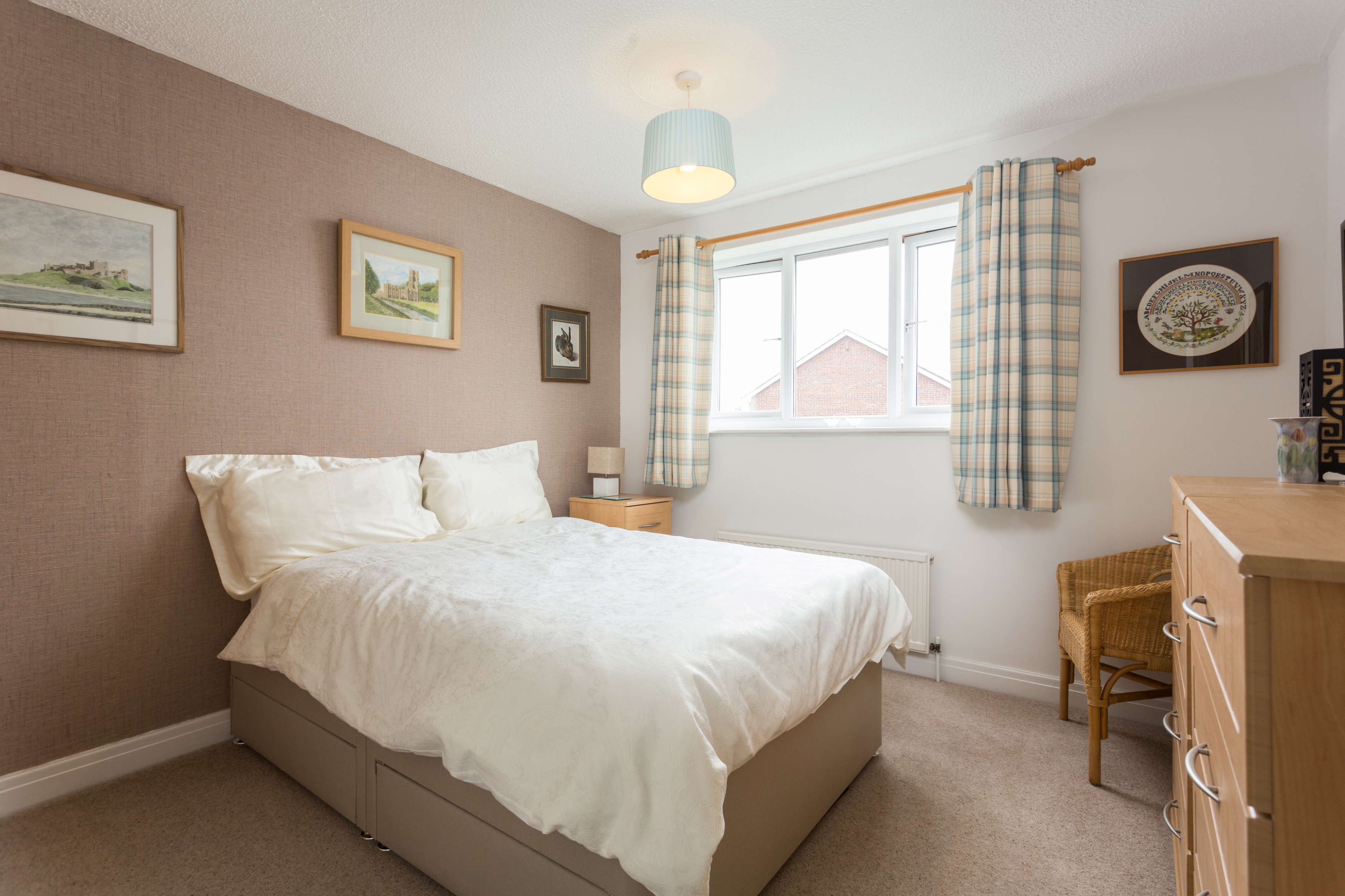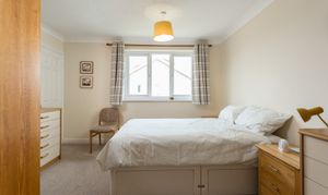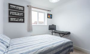 Bedroom two is a double room to the front elevation, with alcove space for wardrobes and a feature wall. Generous enough to accommodate a double bed and further items of free-standing bedroom furniture.