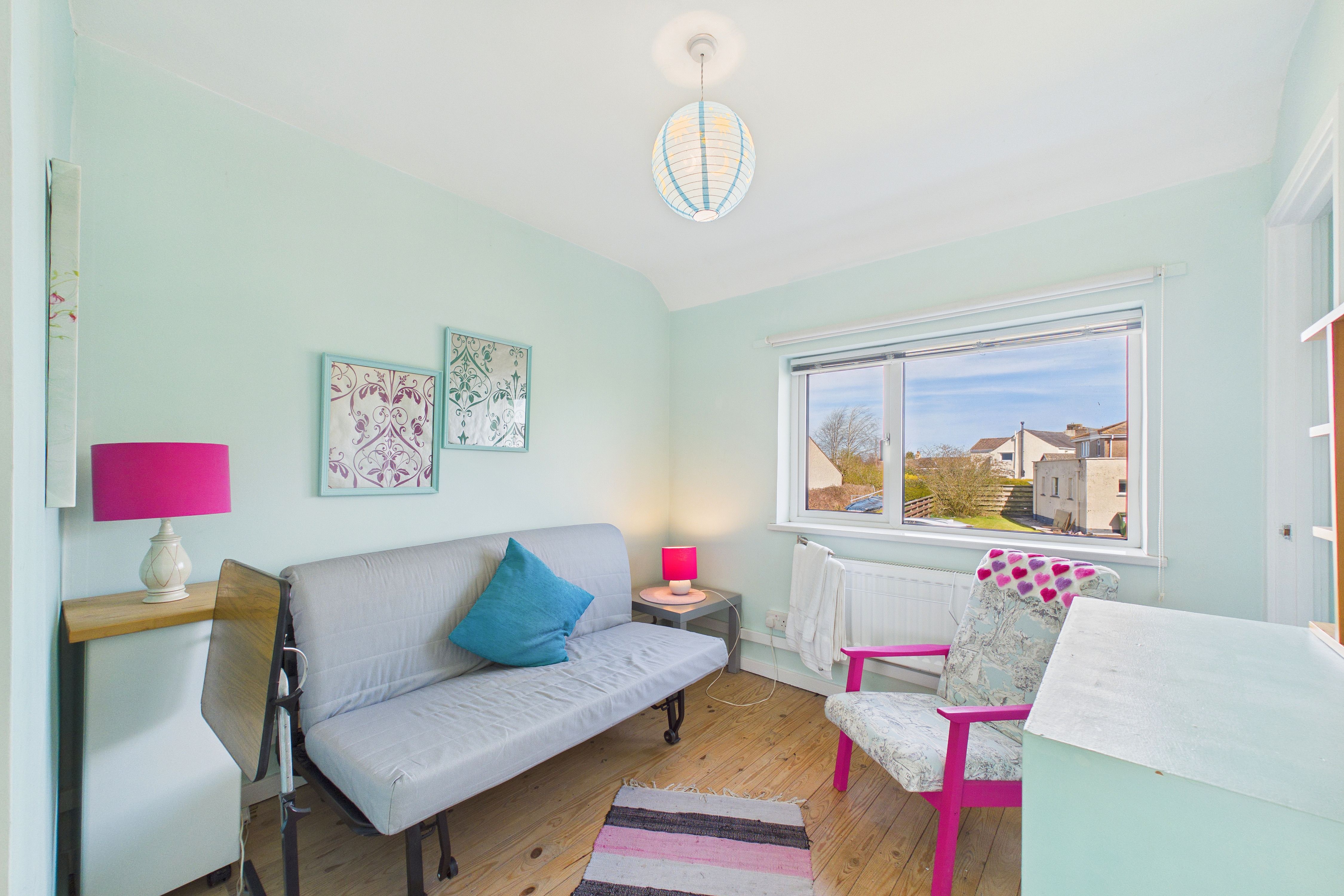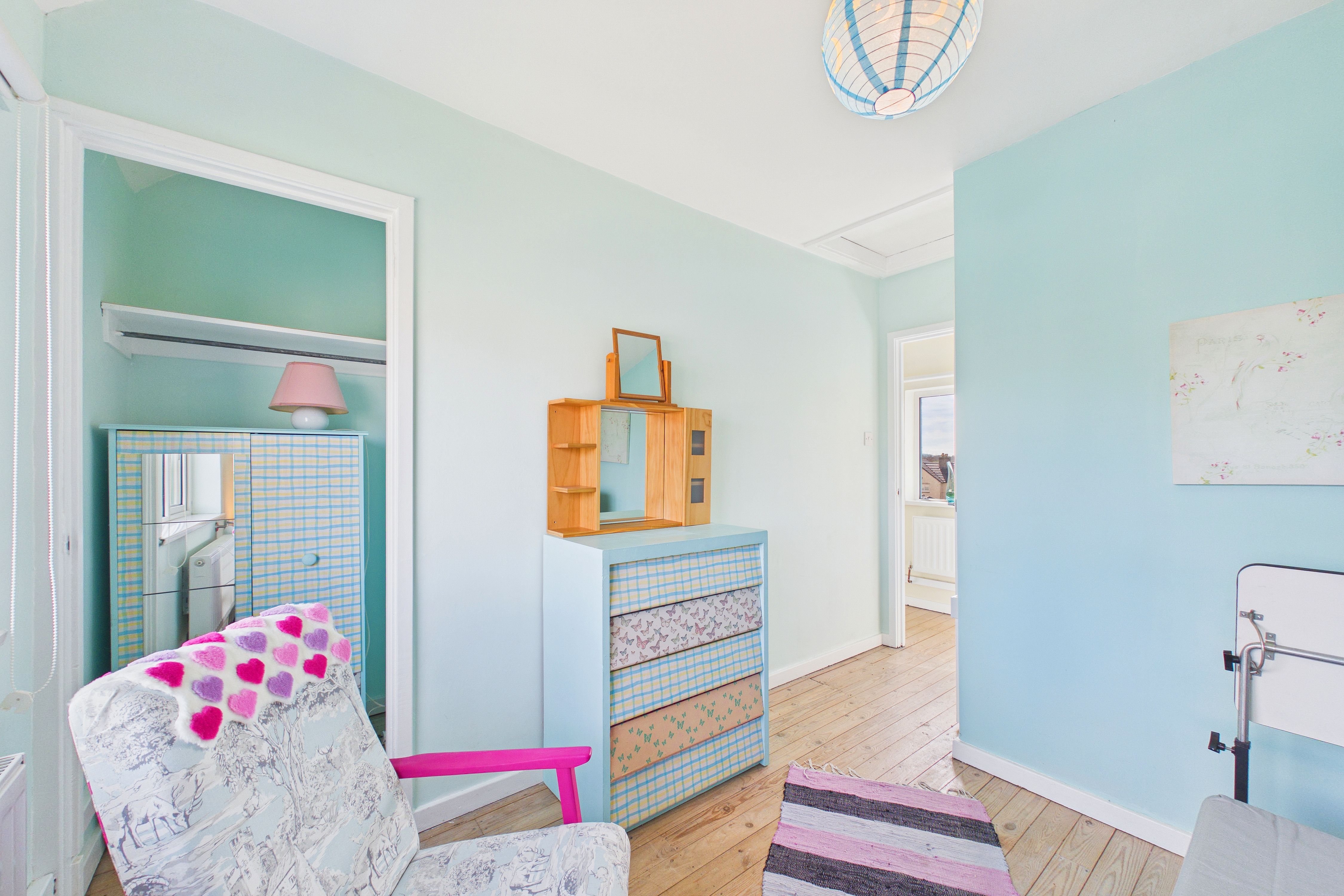 Upstairs, the accommodation continues to impress with two generously sized bedrooms. The master bedroom is particularly spacious, benefitting from dual aspect windows that bathe the room in natural light throughout the day and create a tranquil haven for rest and relaxation. The second bedroom offers flexibility, whether used as a guest room, home office, or nursery. The family bathroom is well maintained and features a modern suite, complete with a shower above the bath and a sleek chrome heated towel rail for added comfort.