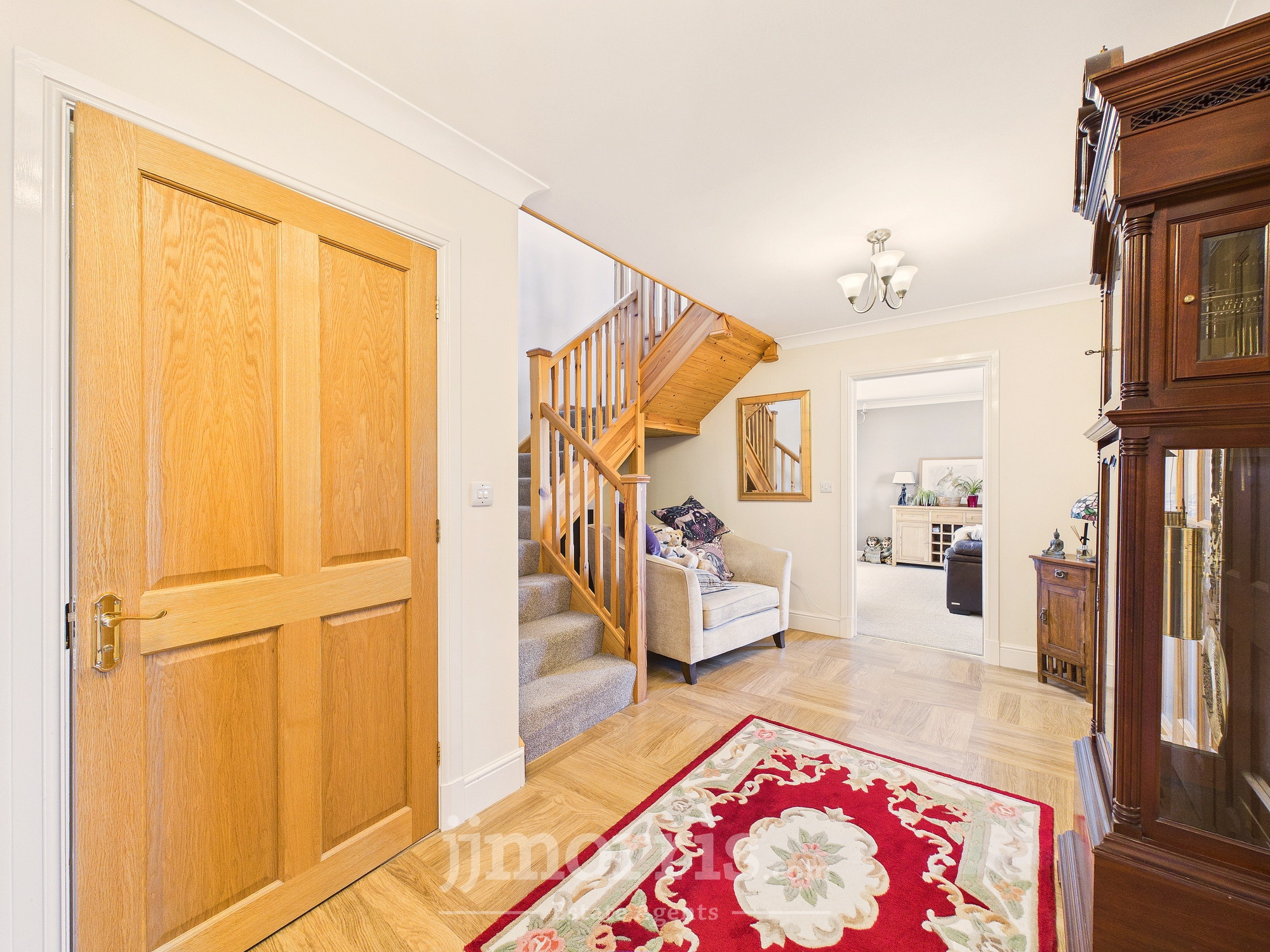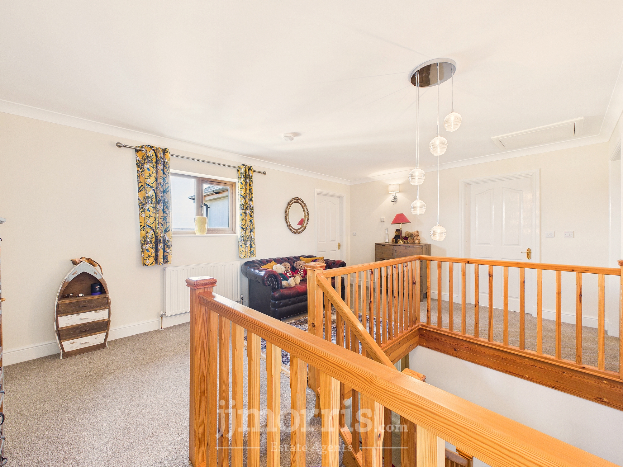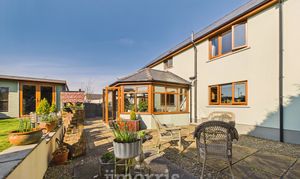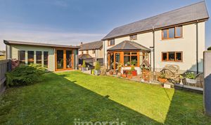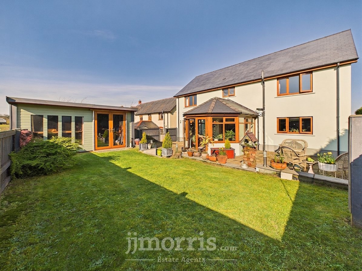 An immaculate and stylish four/five bedroom home in the rural village of Hermon, approximately 13.6 miles from Cardigan and 14 miles from Narberth. Offering oil central heating, ample off-road parking and beautifully presented, versatile accommodation—ideal for family living. The ground floor comprises an entrance porch, spacious hallway with cloakroom, a generous lounge with feature fireplace and patio doors to the rear garden, study/optional bedroom, utility room, and a modern open-plan kitchen with island leading to a dining area and garden room enjoying countryside views.Upstairs offers a galleried landing, family bathroom, and four double bedrooms, including a master with walk-in wardrobe, with two further bedrooms benefiting from en-suites. Externally, a gravel driveway provides ample parking and leads to a detached garage. The South West facing rear garden is mainly laid to lawn with a patio seating area, outdoor power points, and attractive countryside views.