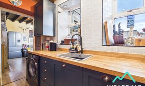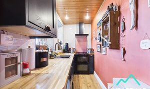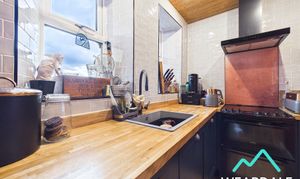 - Positioned to the rear of the property and accessed from the dining room - Two double-glazed uPVC windows to the Northern aspect, looking over the rear garden - Laminate flooring - Wood panelled ceiling - Fully tiled walls to the Northern and Eastern sides - Range of under counter storage units - Wooden work surfaces - Composite sink - Built-in electric oven and hob with overhead extractor - Plumbing for washing machine - Ceiling spotlights - The property’s gas Combi boiler is located in a high-level cupboard in this room