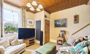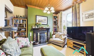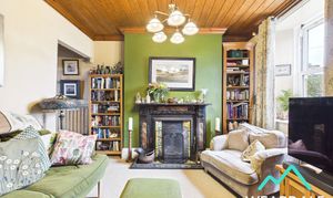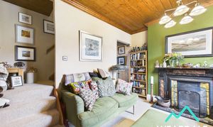 - Positioned to the front of the property, accessed from the entrance porch and providing onward internal access to the dining room, and staircase that rises to the first floor - Double-glazed sash style uPVC window with deep wooden sill to the Western aspect, looking over the front of the property and providing beautiful views of the surrounding hillsides - Carpeted - Wood panelled ceiling - Open fire set on a tiled hearth with tile surround and marble mantle - Ceiling light fitting - Modern vertical radiator - Space for free-standing lounge furniture - Under stairs storage area