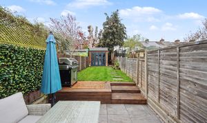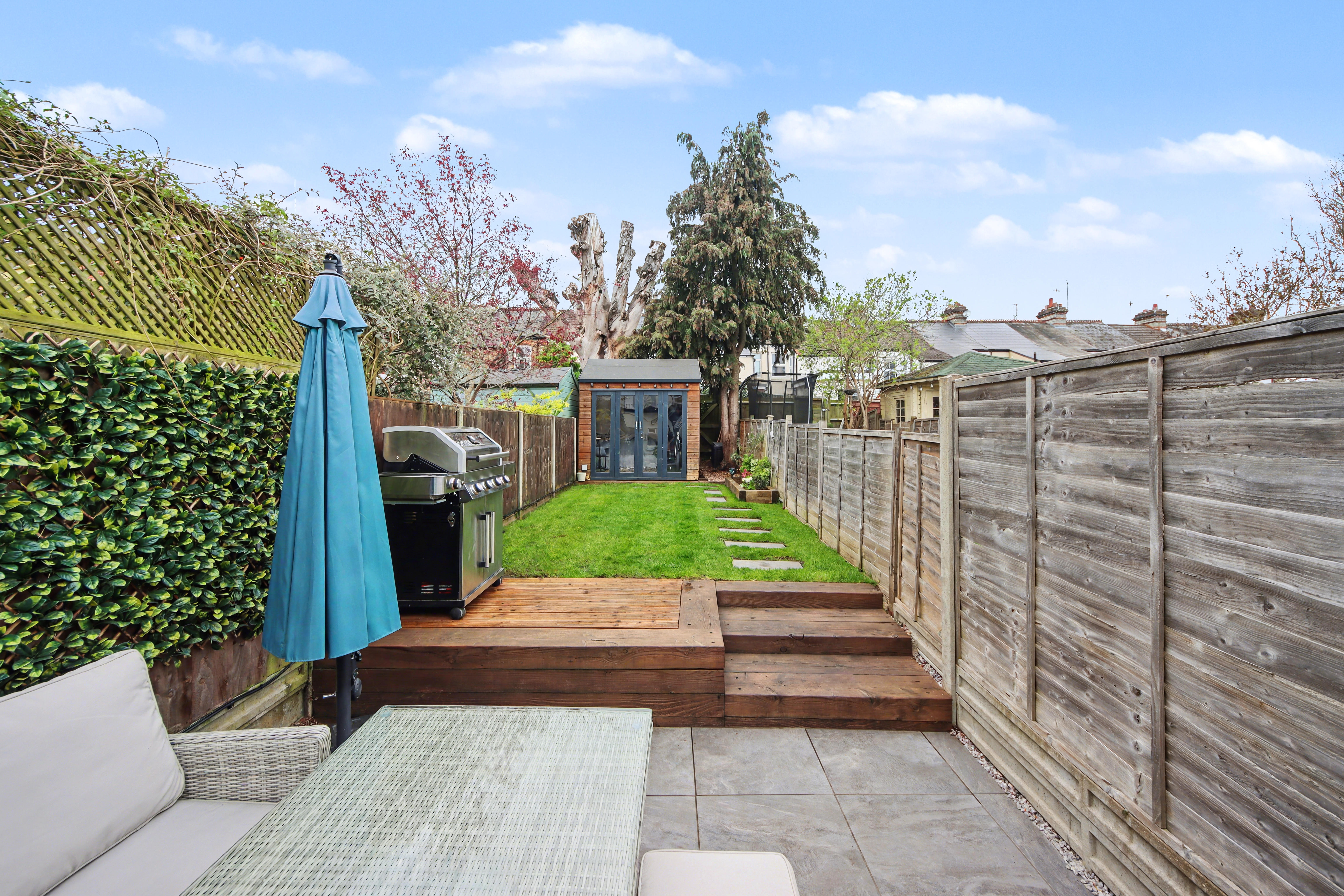 - Garden room currently used as a home office, with gated rear access via private service path.