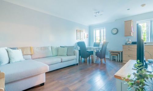 Outside, the property boasts a good-sized front garden that extends to the side, offering a pleasant view of a small green area. The recently landscaped rear garden is perfect for outdoor activities and al fresco dining, providing a peaceful retreat from the hustle and bustle of daily life.