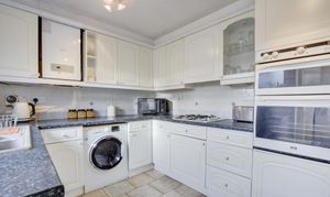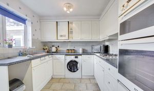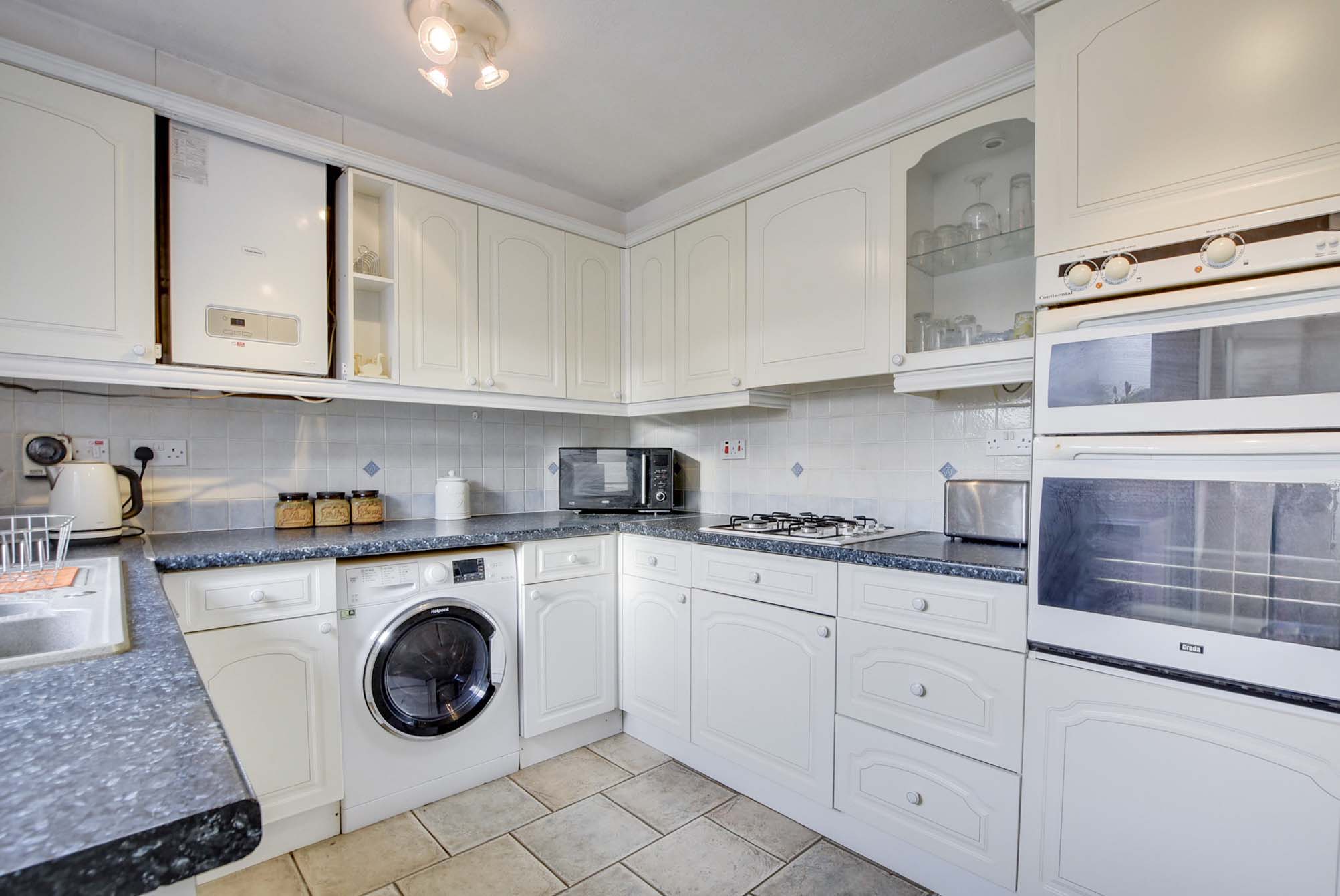 With double glazed window and door to the rear elevation, tiled floor, part tiled walls, wall and base units with work surface over, boiler, integrated double oven and hob, extractor hood, sink and drainer, plumbing for washing machine, space for under counter fridge and freezer, radiator.