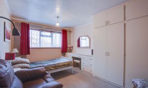 With double glazed window to the front elevation, carpet floor, fitted wardrobes, fitted dressing table with drawers, radiator.