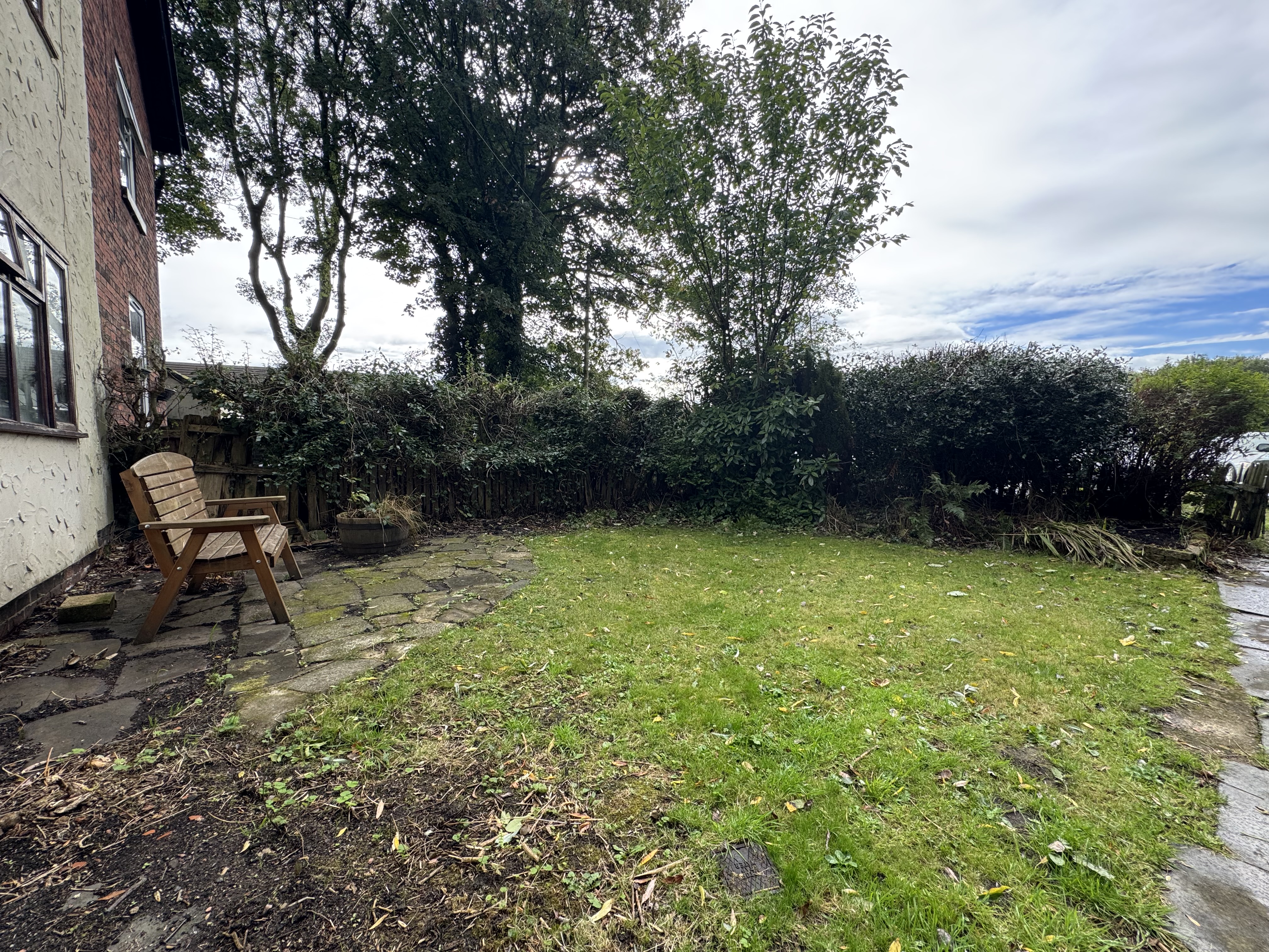 Corner plot rear garden with open views and patio areas perfect for a growing family.