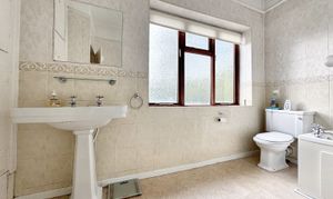 Window to the front elevation. A bathroom suite comprising of a walk in shower, separate bath and wash basin. Storage cupboard.