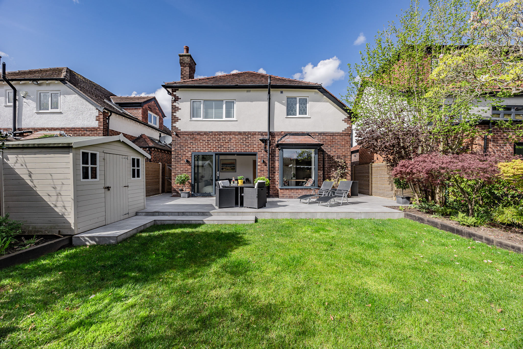 Externally, the property is further enhanced by a truly exceptional rear garden, designed by RHS award-winning garden designer Sharon Hockenhull. This thoughtfully landscaped space offers a tranquil and private setting, with an array of mature planting including magnolia, Japanese trees, hazelwood, beech, holly and smoke bush, alongside seasonal colour from tulips.