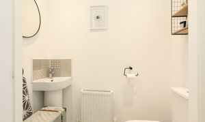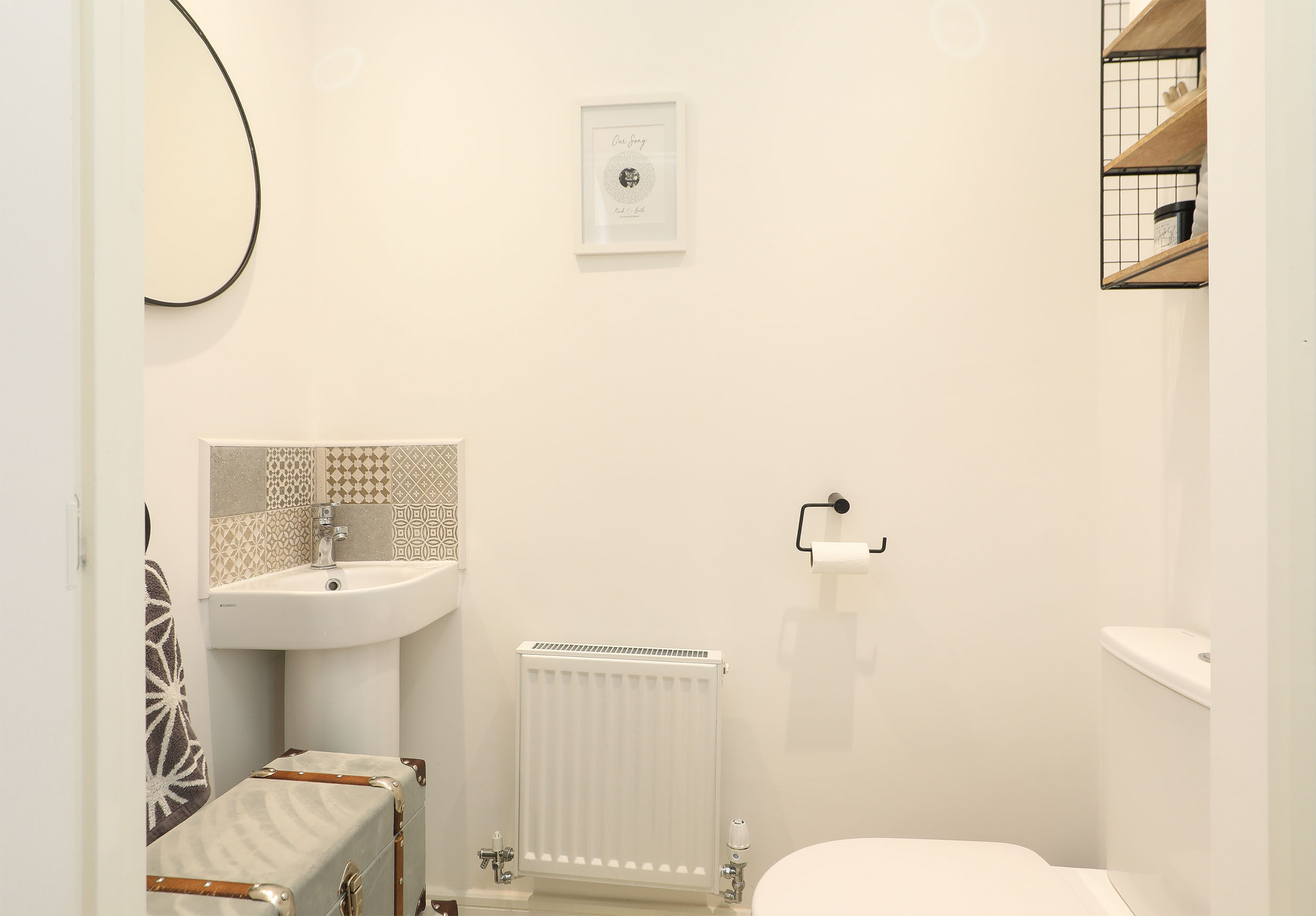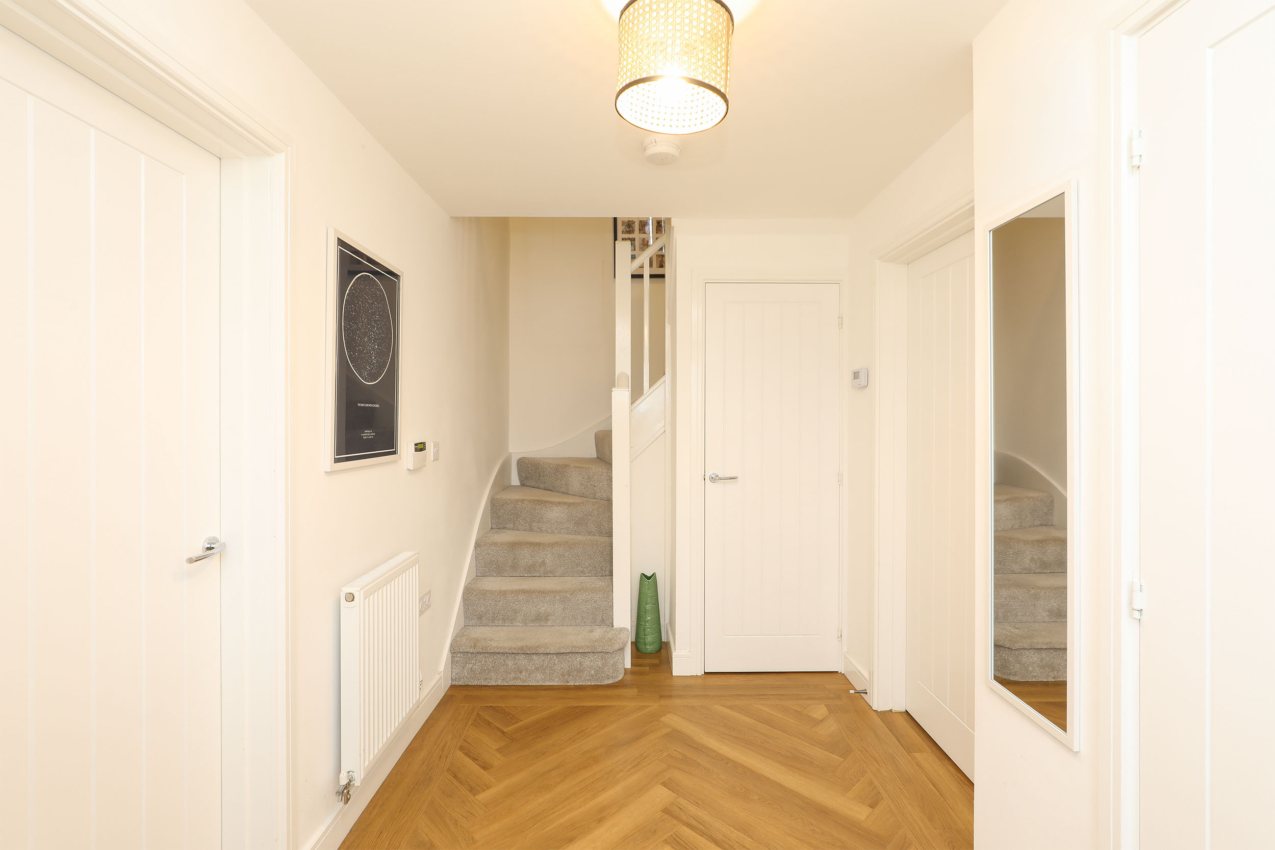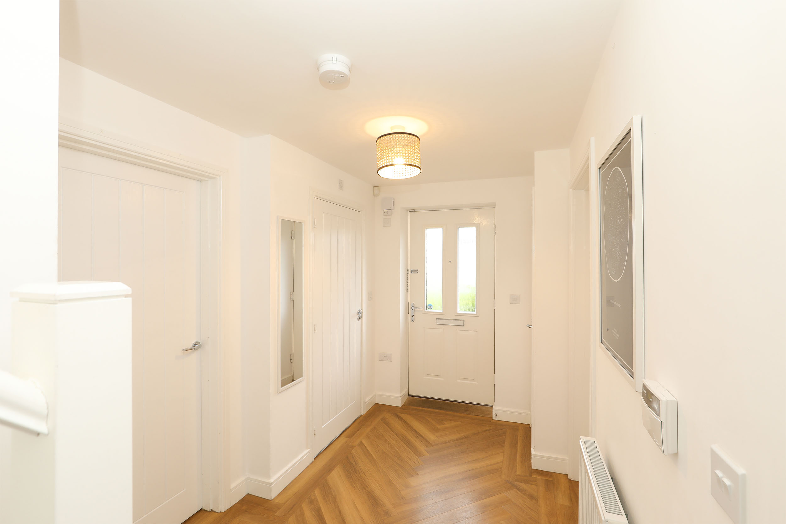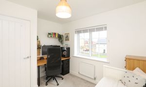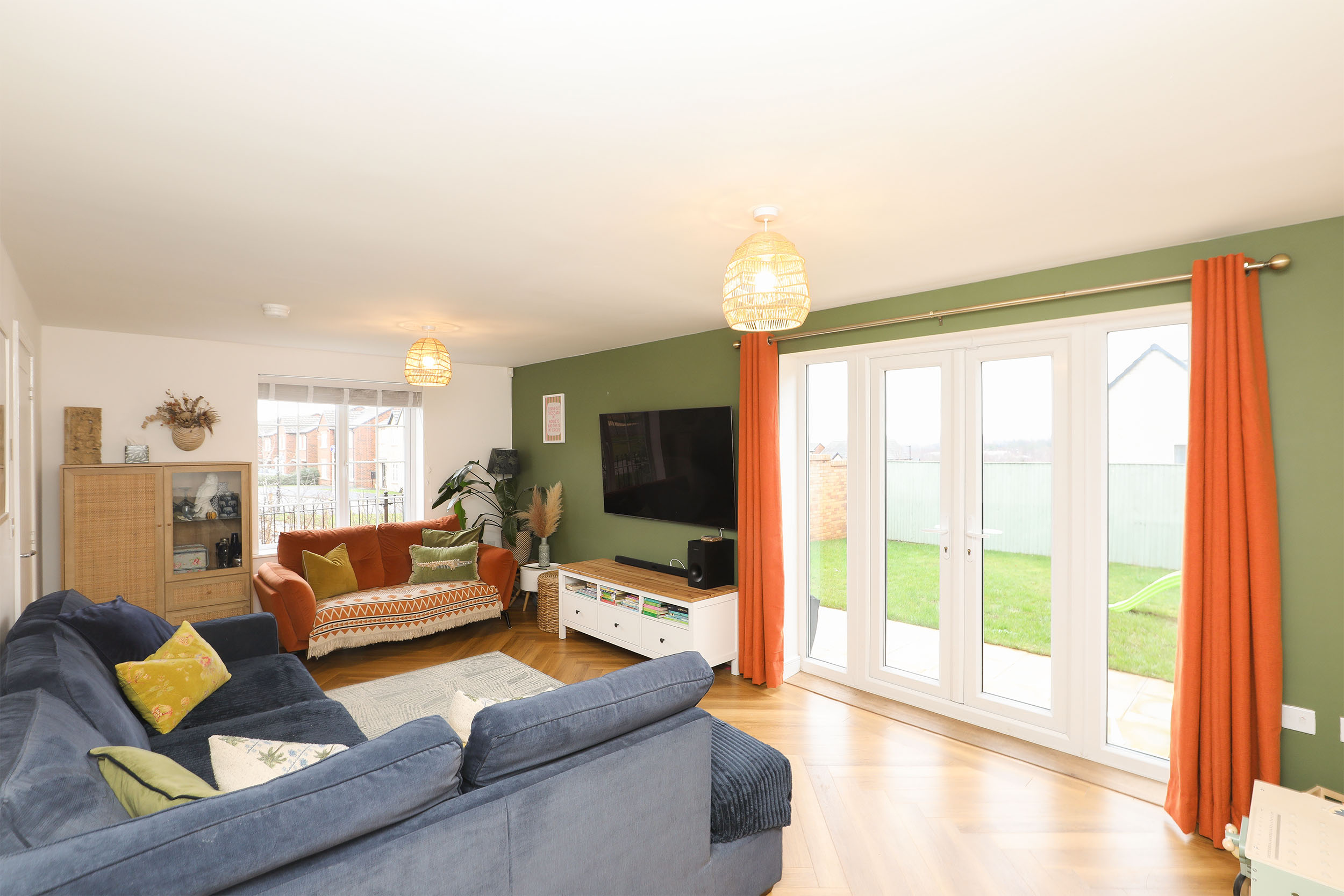 On the first floor, four well-proportioned bedrooms offer excellent flexibility. The principal bedroom benefits from fitted wardrobes and an elegant en-suite shower room, creating a private retreat. The remaining bedrooms are perfectly suited to children or home working and are served by a family bathroom featuring a contemporary three-piece suite, while a ground-floor WC gives a great option for guest convenience.
