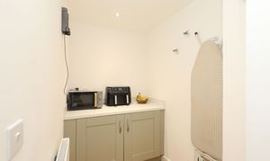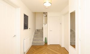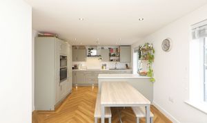 Upon entering, the welcoming entrance hall immediately sets the tone, revealing tasteful décor and a sense of considered design throughout. From here, you are led into the impressive open-plan kitchen and dining area, which is a contemporary space flooded with natural light from three windows. The fully integrated kitchen is thoughtfully designed, while the dining area provides an elegant setting for hosting family and friends. An adjoining utility room adds valuable convenience, perfectly suited to the demands of modern family life.