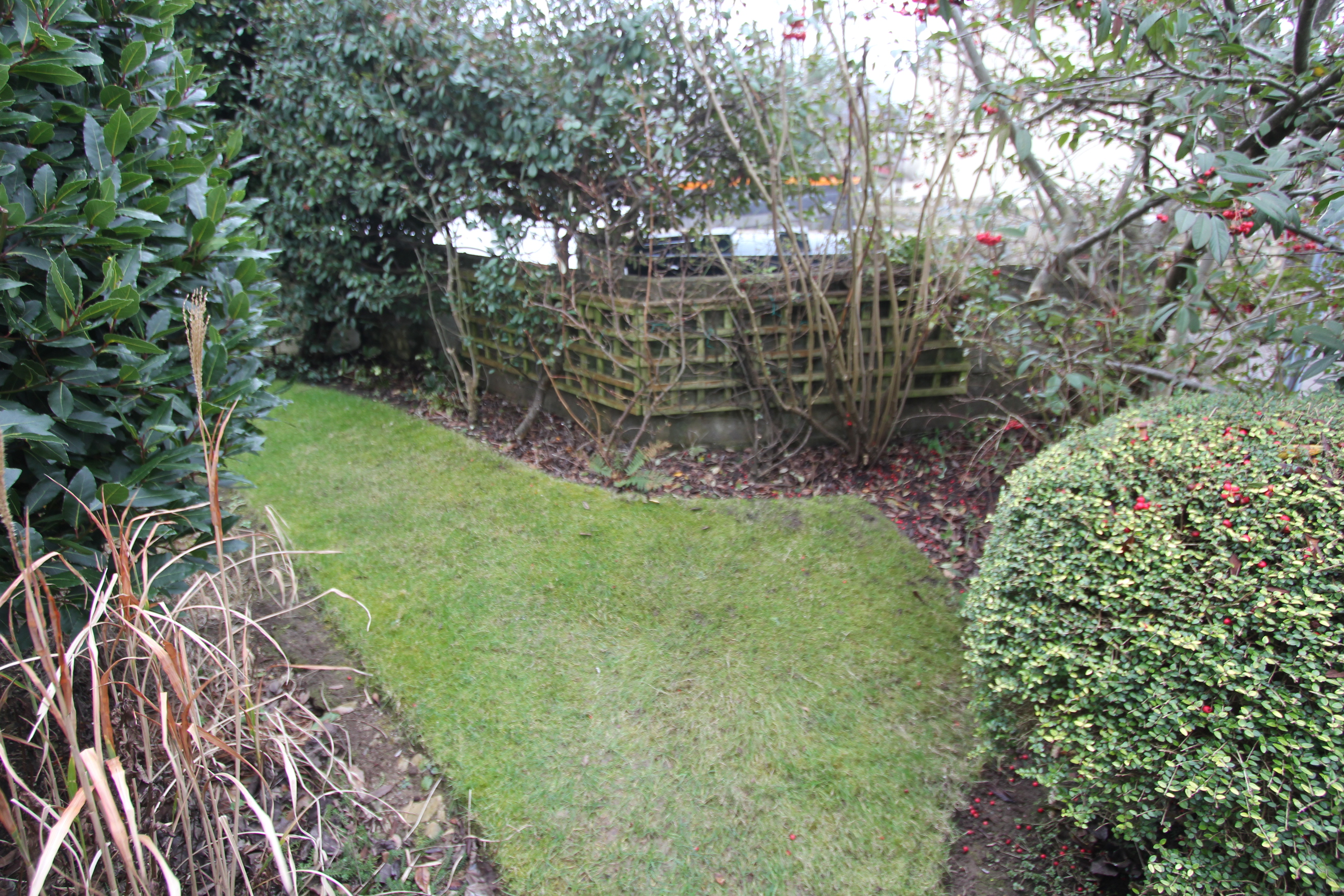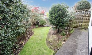 Front garden - mature with flower beds, laid to lawn. Gate. Side garden - laid to lawn with flower beds and mature tree. Rear garden - laid to lawn with mature flower beds etc and cesspit.