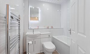 - Modern three-piece bathroom suite with rainfall shower and heated towel rail