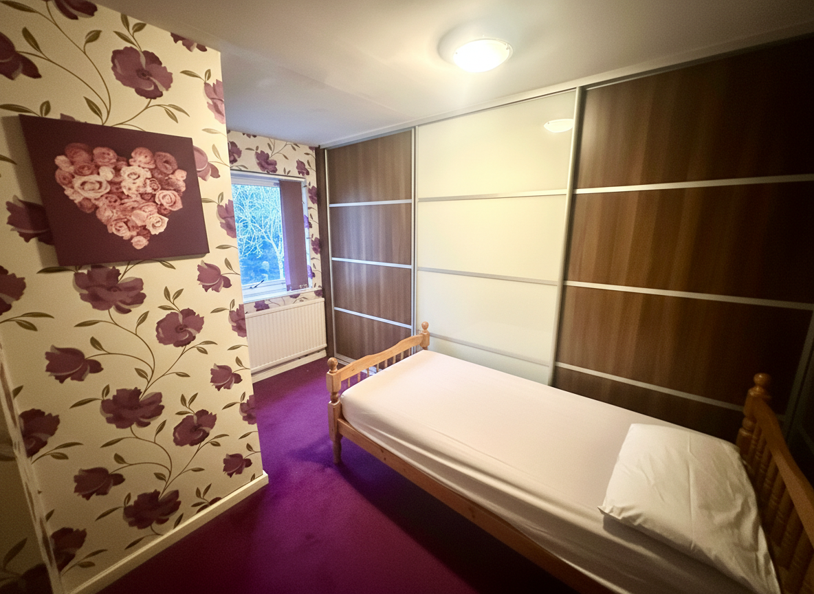 Carpeted, two double glazed windows and two radiators. There is a minimum width measurement of 14'3ft and a minimum length measurement of 6'5ft.