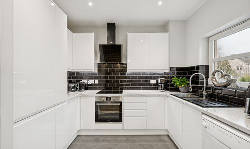 To the front of the home, flowing from the living room, is the newly upgraded open-plan kitchen. The modern galley-style kitchen has been meticulously updated with high-quality fixtures and fittings, including sleek countertops, contemporary cabinetry, and an abundance of worktop and cupboard space. A downstairs WC is conveniently located off the hallway, perfect for guests and family members alike, adding to the convivence of the home,