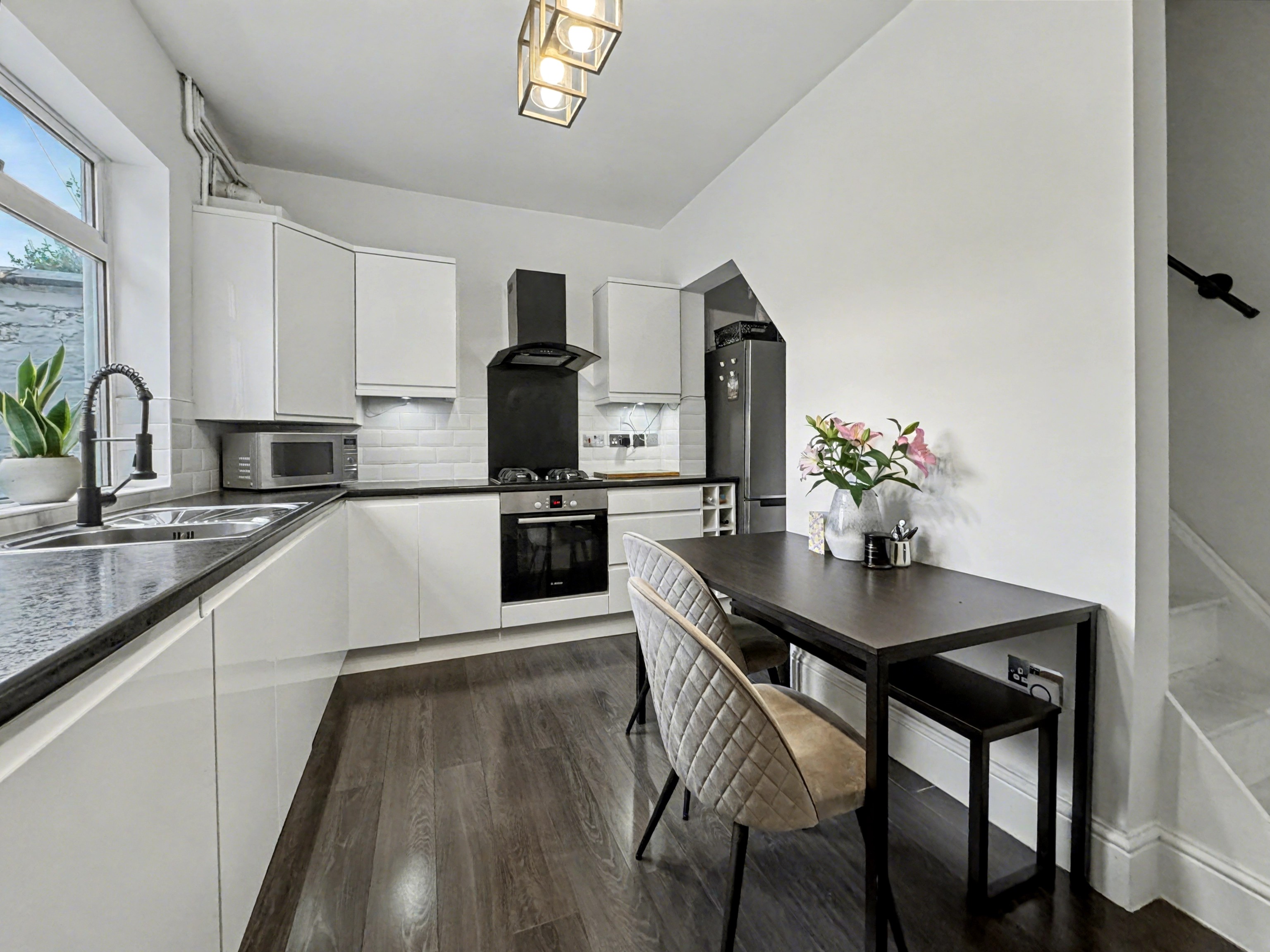 This charming property offers a beautifully finished interior with an inviting living space that blends comfort and style. The lounge is filled with natural light thanks to a generously sized front window, creating a warm and welcoming atmosphere. It flows through to an impressive kitchen diner, thoughtfully arranged to provide both practicality and space for entertaining, with room for essential appliances and a dedicated dining area that makes everyday living and hosting feel effortless. Completing the ground floor is a well-presented bathroom, adding further convenience to the layout.