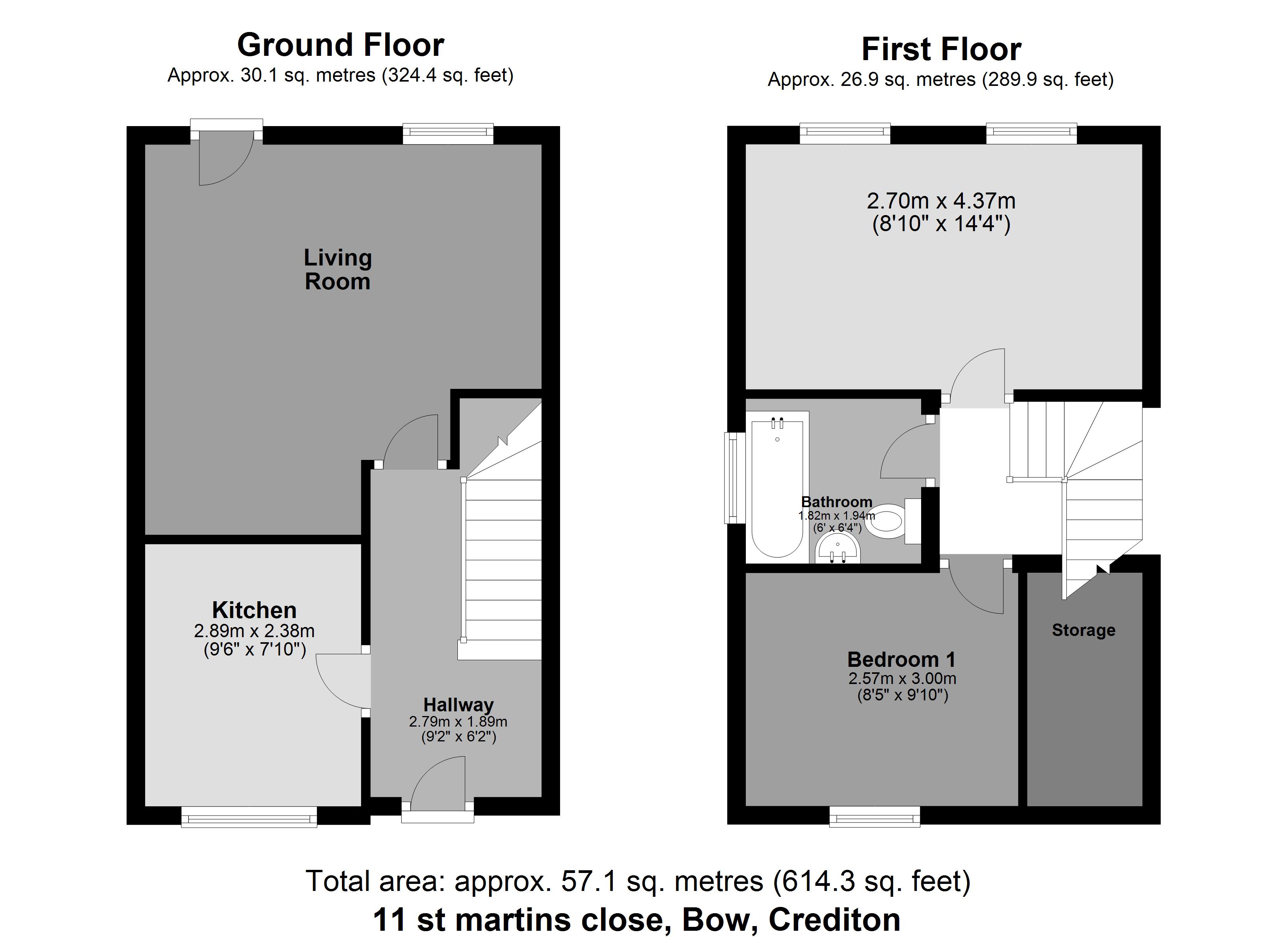 A well presented and modern, 2 bedroom property on the outskirts of Bow only 15 minutes from Crediton and Okehampton. 11 St Martins Close offers a great home for a couple or small family. The accommodation comprises a well designed kitchen, a spacious and light living room which leads out to a large back garden which is mainly laid to patio. On the first floor there are two good sized, double bedrooms and a family bathroom. To the side of the property there is parking for two vehicles