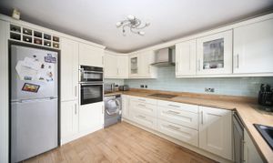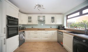 Set on a quiet cul-de-sac, the property features a three-car driveway and an integral garage, which is plastered and floored for added practicality. Inside, the welcoming porch and entrance hallway lead to a modern fitted kitchen positioned to the front, complete with a range of NEFF integrated appliances, including an induction hob. To the rear is a spacious open-plan lounge and dining area with a feature gas fireplace and access to a large conservatory, creating a superb space for entertaining and family life. There is also a separate office room, ideal for remote working. Upstairs, there are four well-proportioned bedrooms, all doubles, and a stunning fully tiled family bathroom. The home benefits from gas central heating, with the boiler installed just last year, ensuring efficiency and comfort.