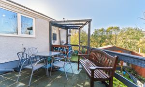 Externally, the property offers excellent outdoor space. To the front, there is a driveway providing off-road parking with an electric car charger and convenient side access leading through to the rear garden. The rear garden enjoys stunning, far-reaching views, creating a picturesque backdrop. Featuring an elevated patio area, a lawn, and a useful storage shed, the garden is ideal for outdoor seating, entertaining, or simply enjoying the peaceful surroundings.